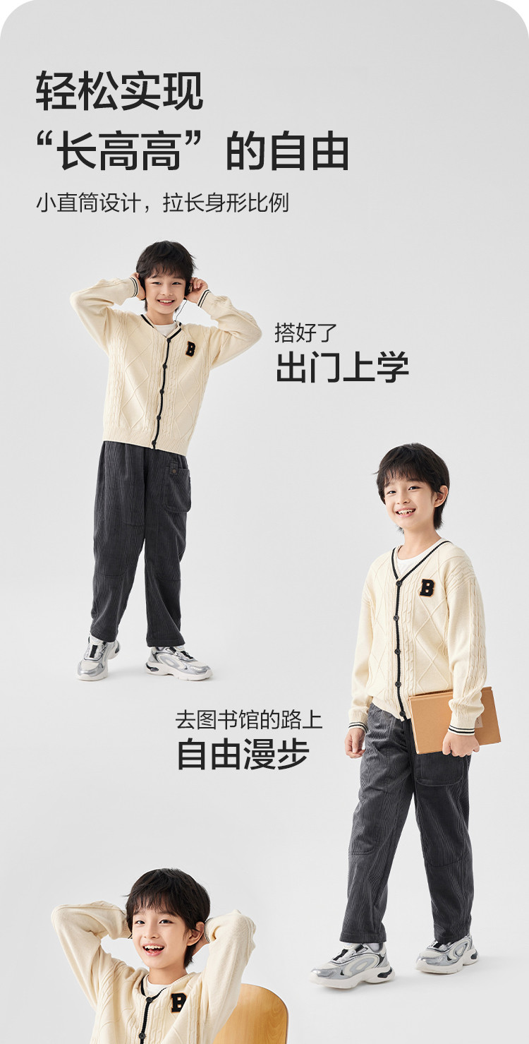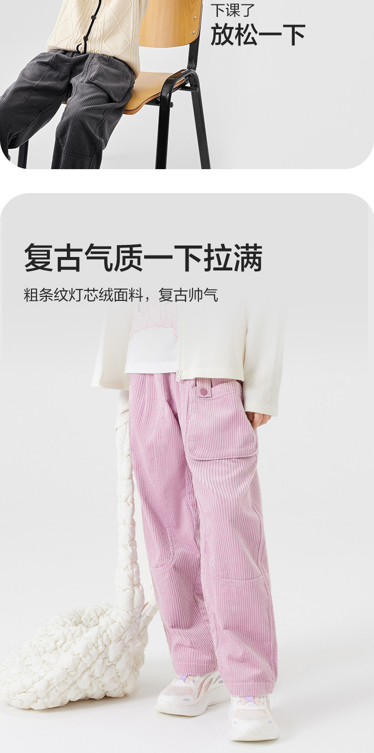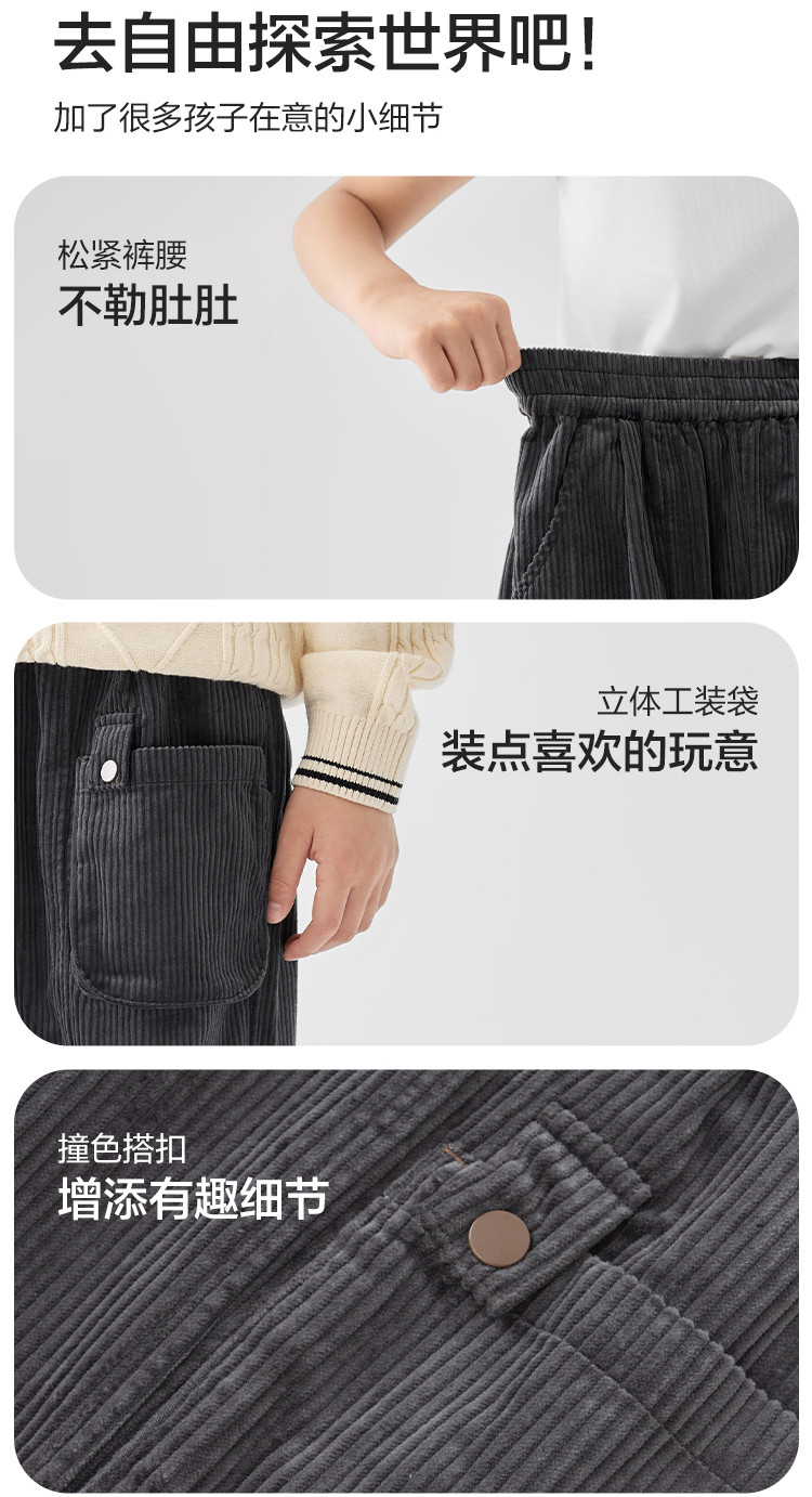 柔软灯芯绒直筒裤儿童裤子中大童幼童男童女童长裤宽松舒适春秋款 425349