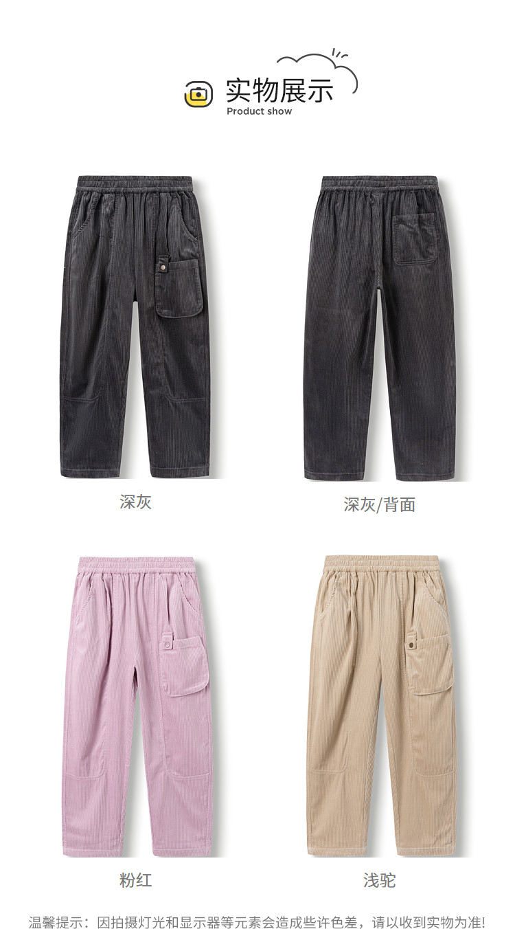 商品名称:柔软灯芯绒直筒裤儿童裤子中大童幼童男童女童长裤宽松舒适春秋款 425349