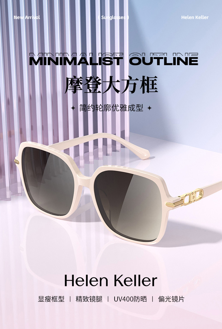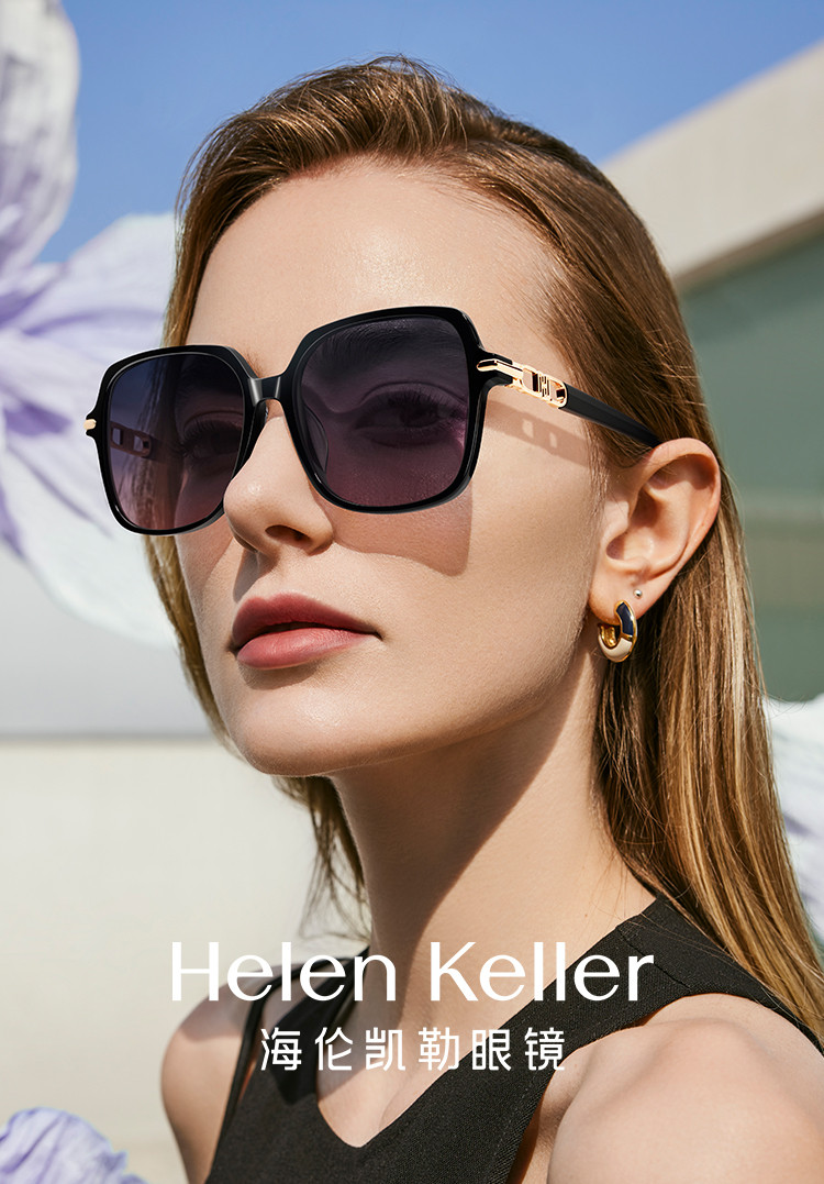 海伦凯勒摩登大方框防紫外线墨镜女 084699