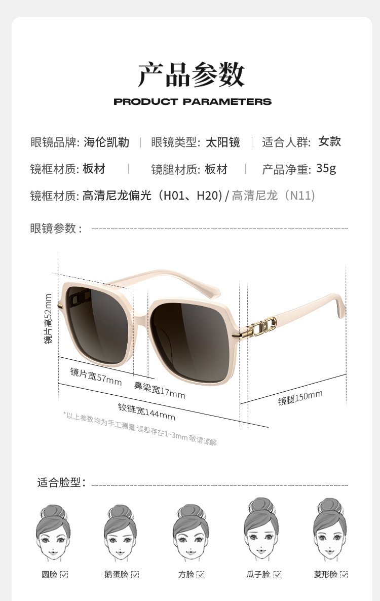 商品名称:海伦凯勒摩登大方框防紫外线墨镜女 084699