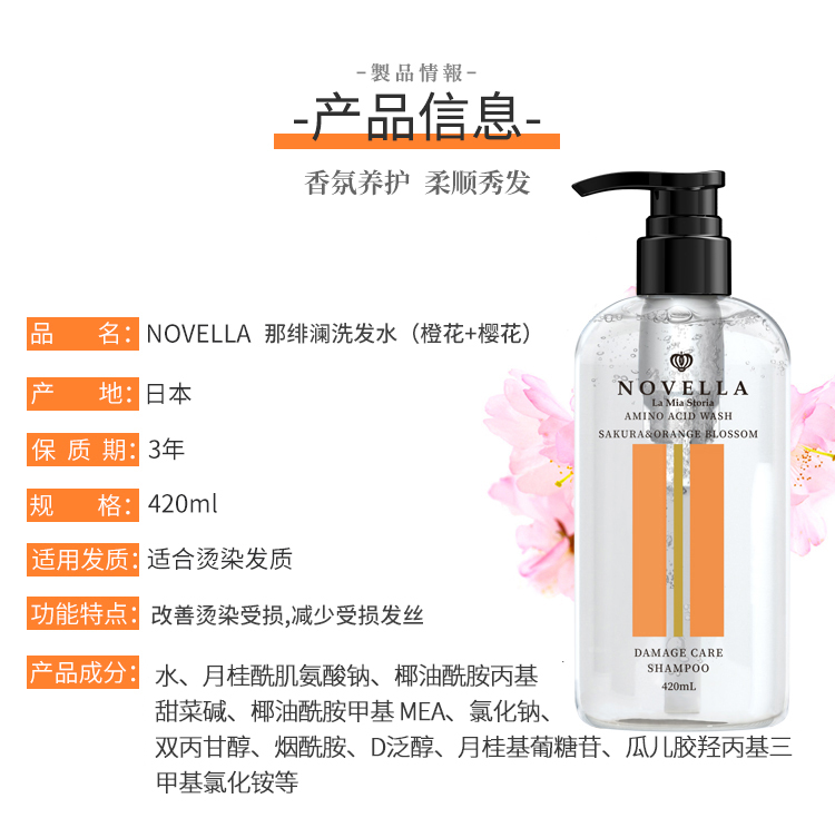 商品名称:NOVELLA那绯澜修护洗发水(樱花+橙花)420ml