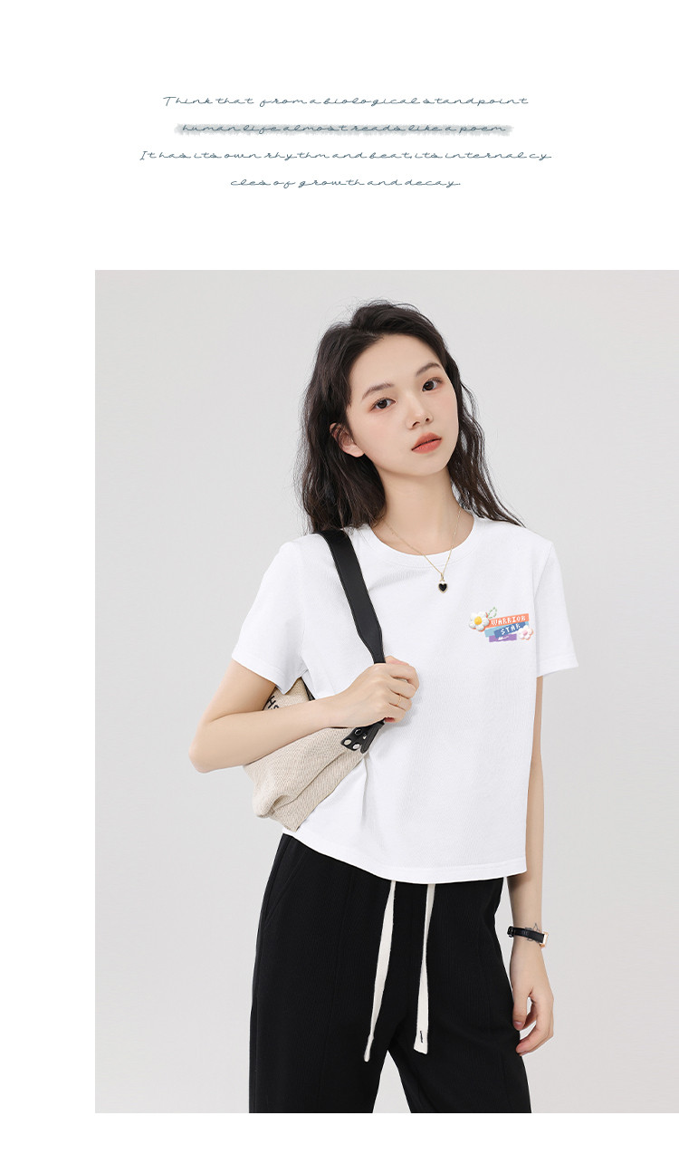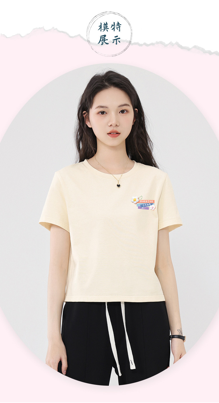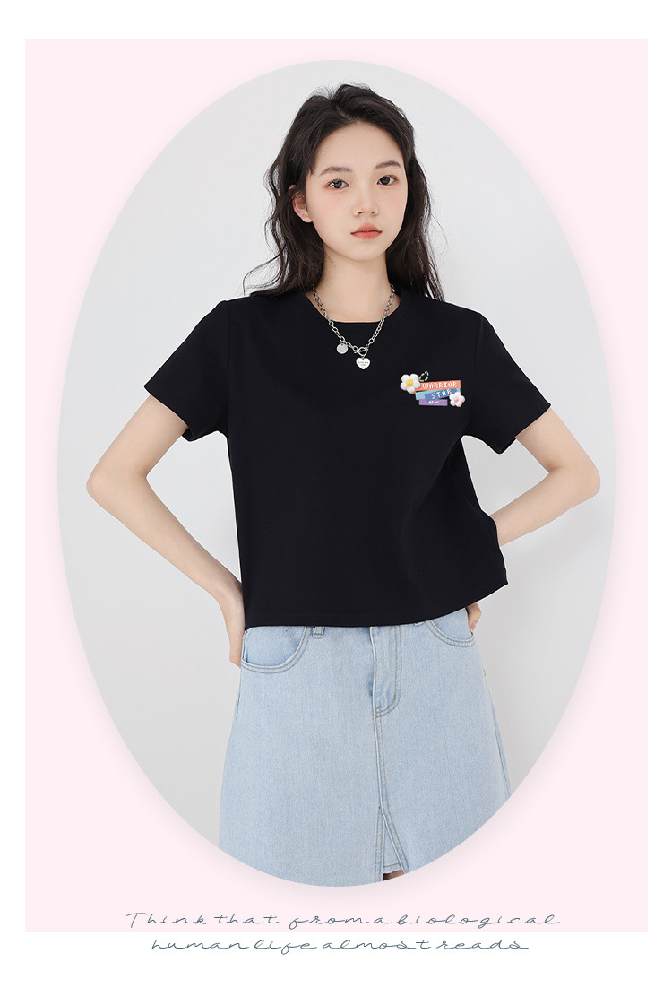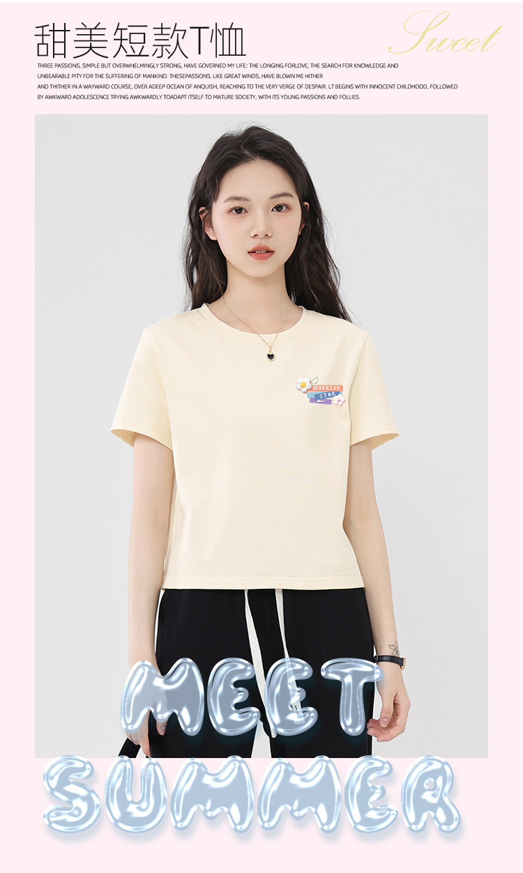 商品名称:【女装100%棉】正肩短袖T恤女夏设计感显高辣妹露脐短款上衣 464531