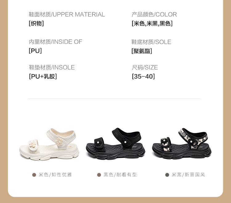 商品名称:【小香风】国风沙滩凉鞋厚底显高凉鞋女夏天2024凉鞋女士凉鞋 261056