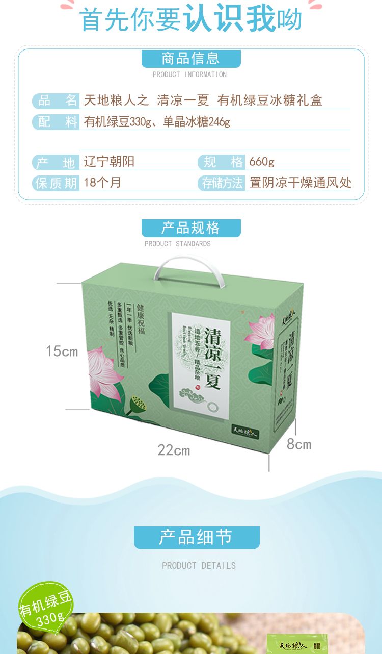 商品名称:天地粮人清凉一夏 (绿豆冰糖版)576g