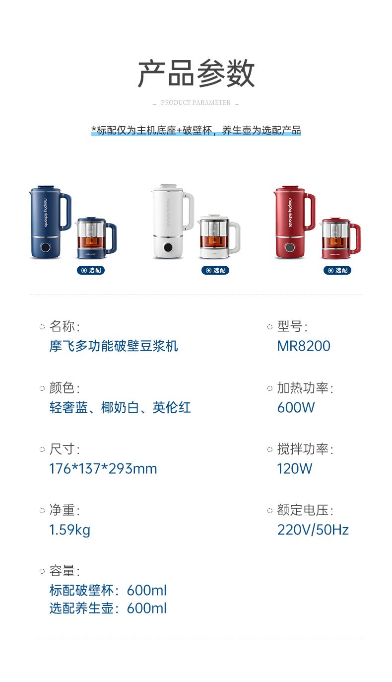 商品名称:摩飞多功能破壁豆浆机MR8200