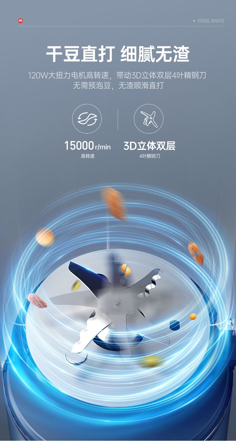 摩飞多功能破壁豆浆机MR8200蓝色