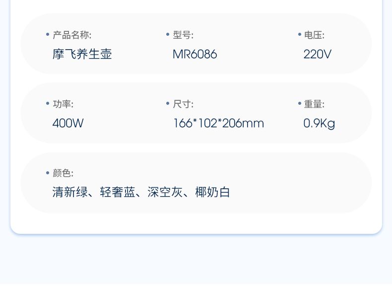 商品名称:摩飞便携养生壶MR6086