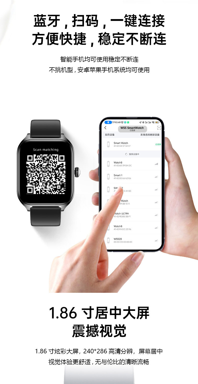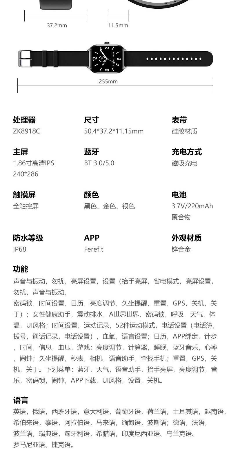 商品名称:LEFIT勒菲特WS1轻薄型智能蓝牙手表多功能运动记步数音乐防水手表