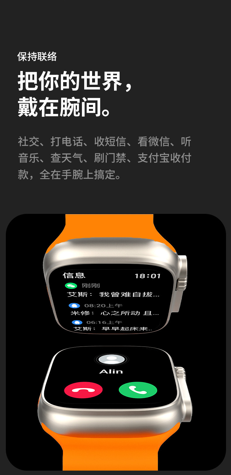 商品名称:LEFIT勒菲特ULTRA8支付型智能蓝牙通话手表多功能运动手表