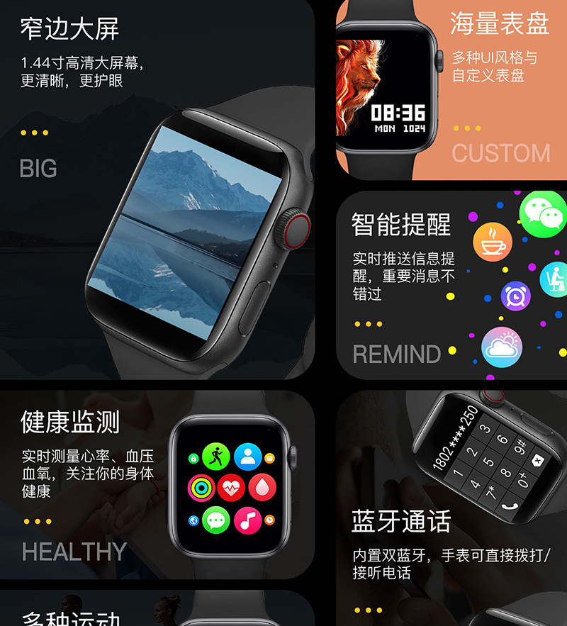 商品名称:LEFIT勒菲特手表S8智能蓝牙通话手表多功能运动防水音乐手表