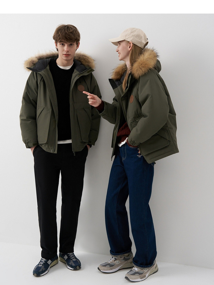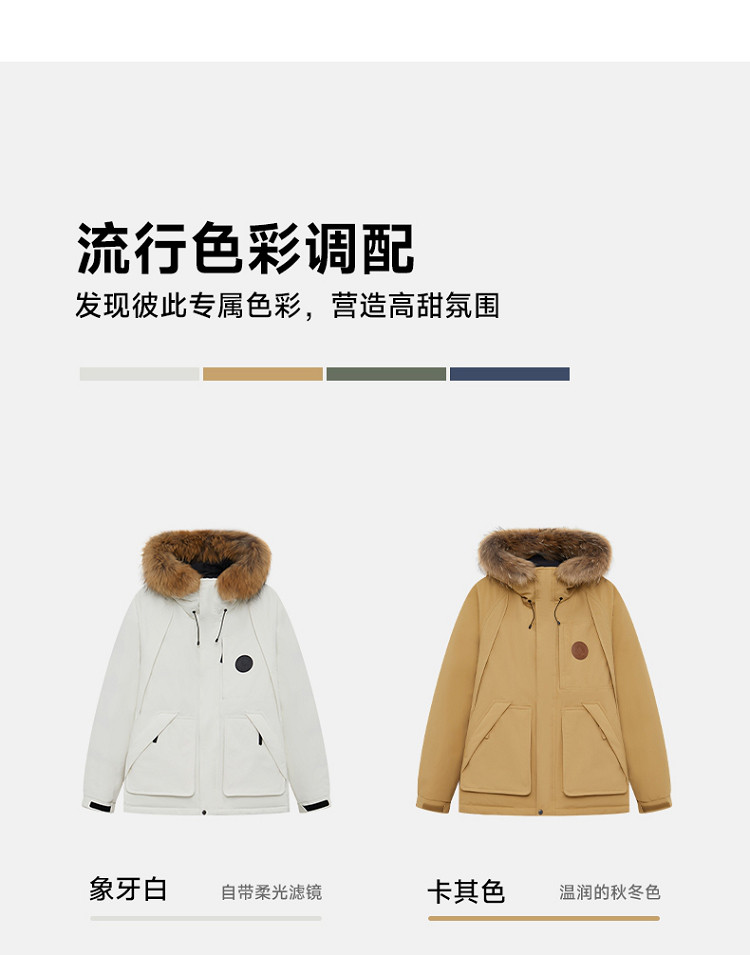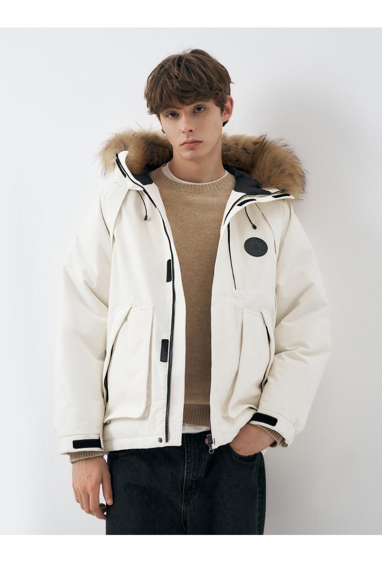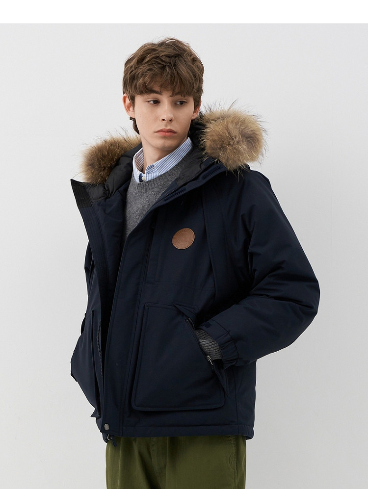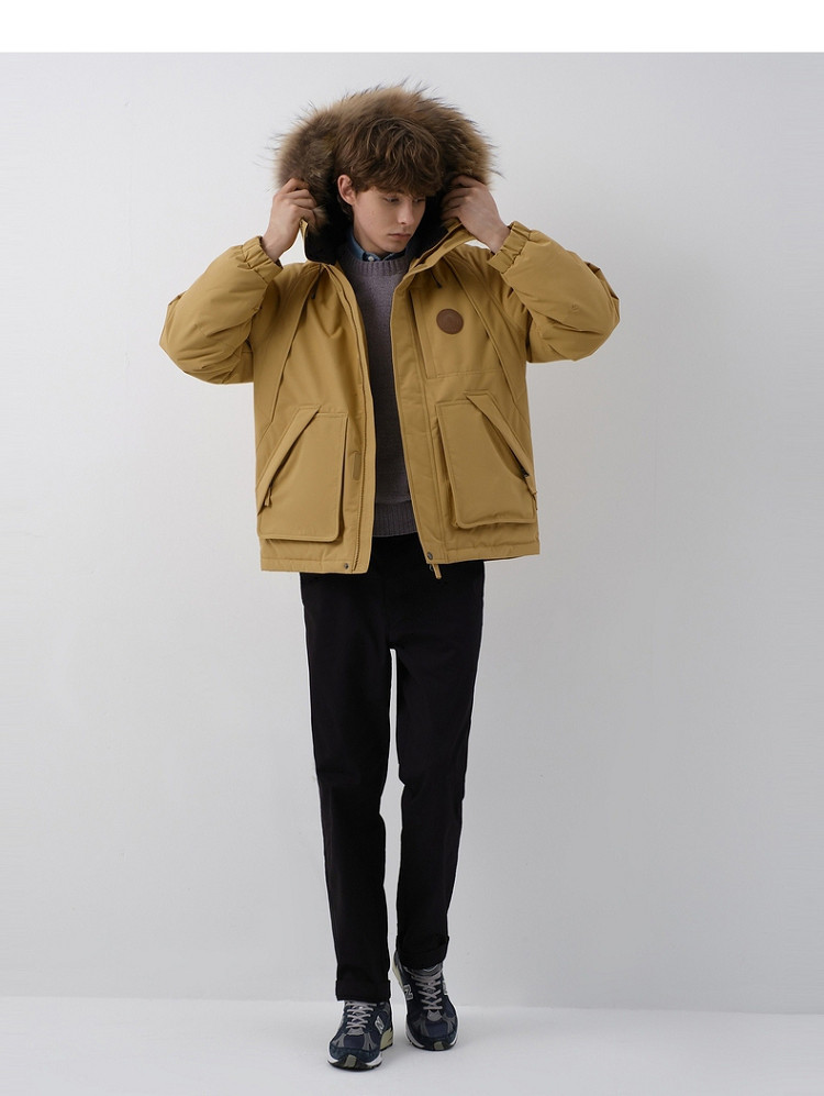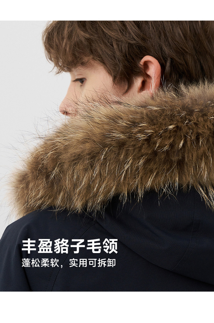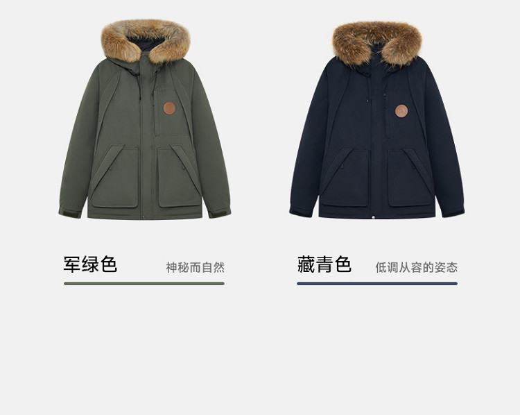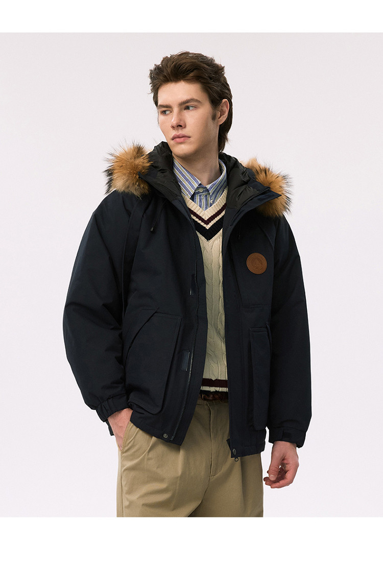 商品名称:小熊男装简约舒适时尚潮流毛领羽绒服冬季休闲防水情侣外套男 461569