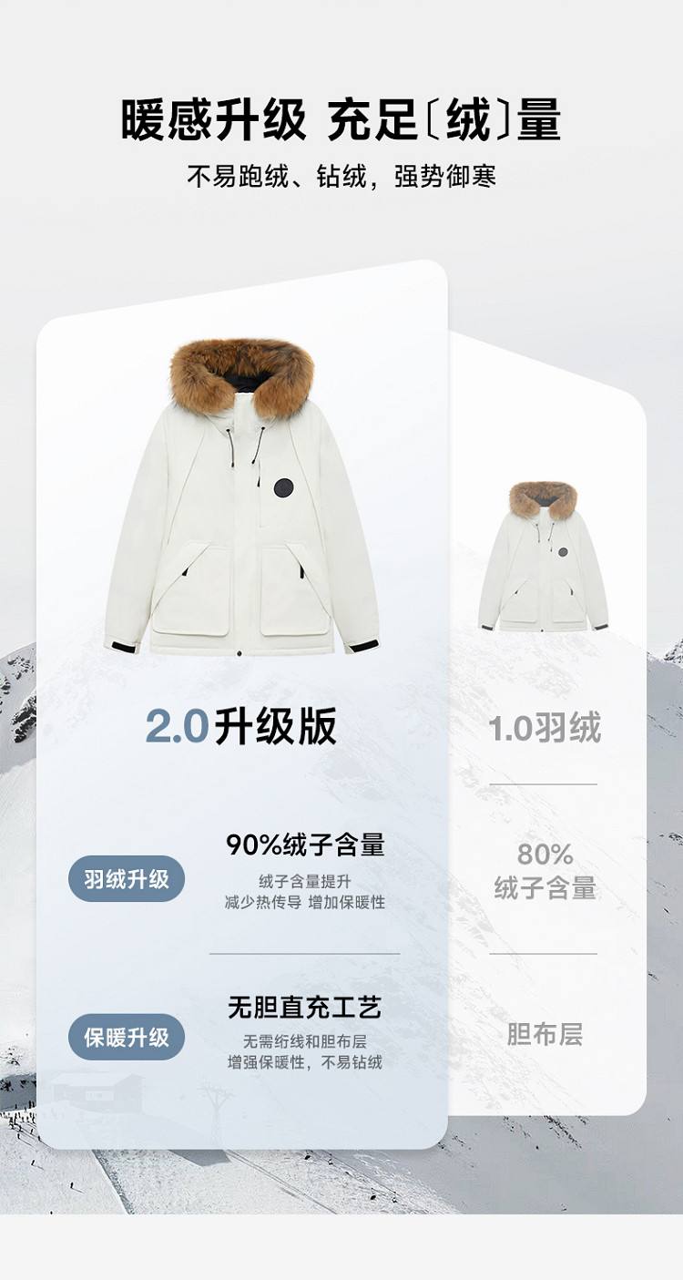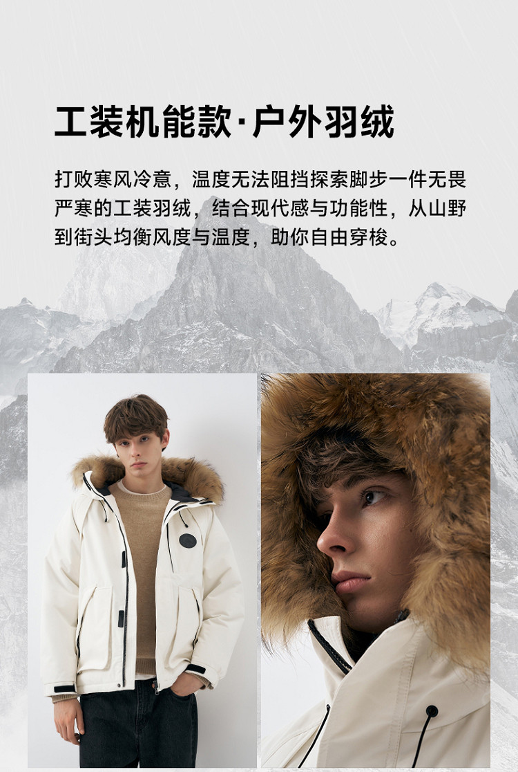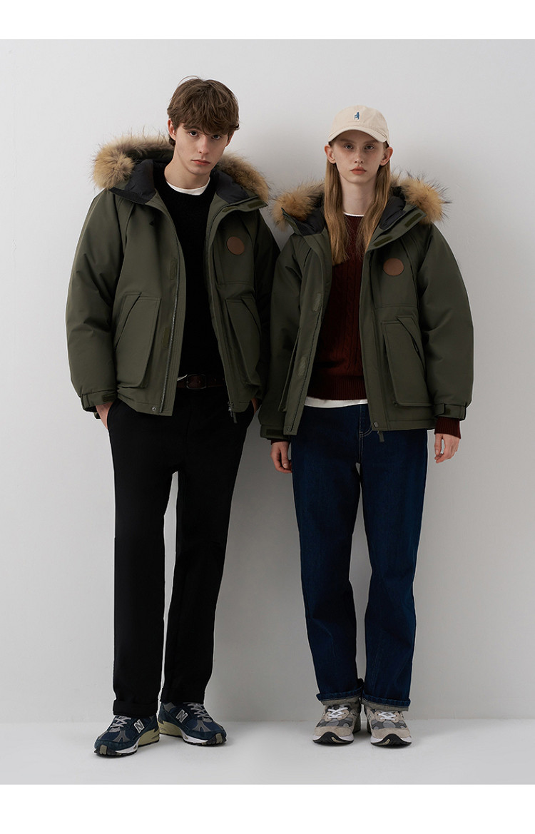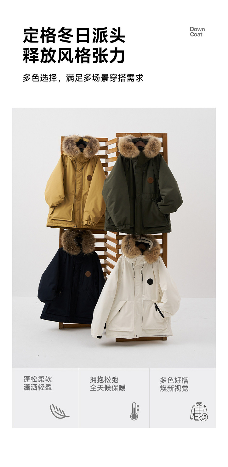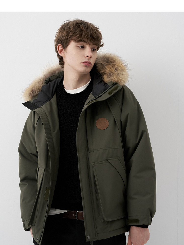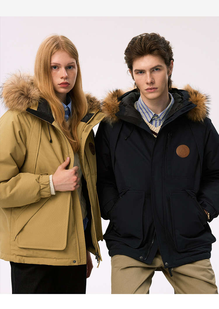 商品名称:小熊男装简约舒适时尚潮流毛领羽绒服冬季休闲防水情侣外套男 461569
