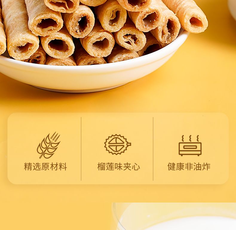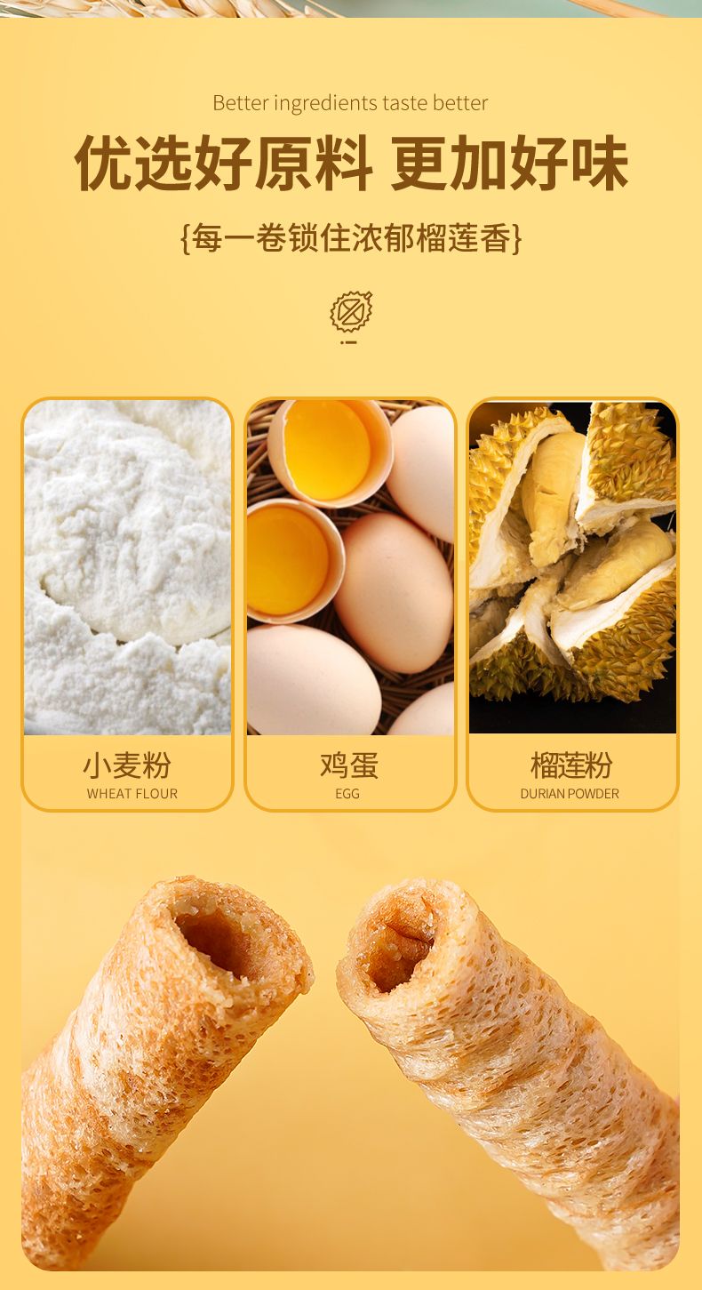 商品名称:七点食分 夹心蛋酥卷 榴莲味