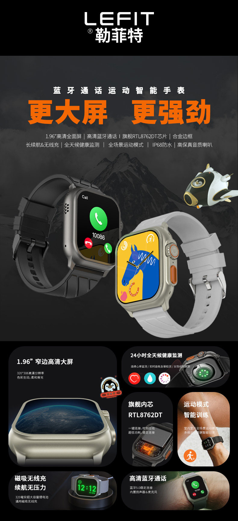 LEFIT勒菲特噗噗星人联名款PU8支付型智能蓝牙手表运动手表