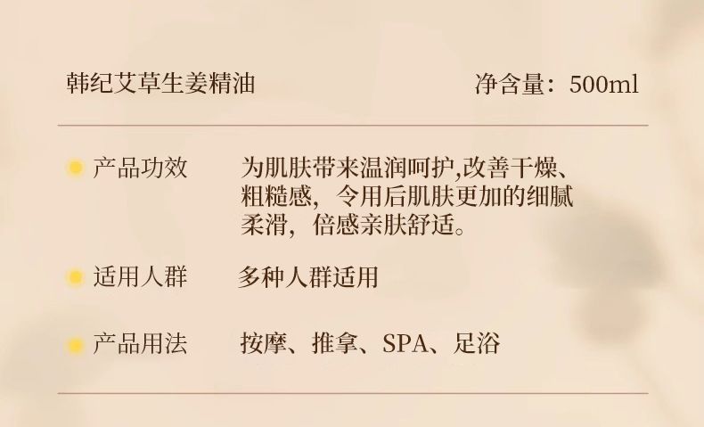 商品名称:Hankey/韩纪 艾草生姜精油500ml 全身按摩精油