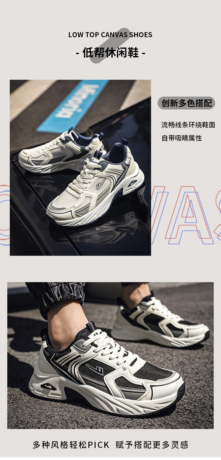 商品名称:【春季热卖】潮流拼色低帮休闲鞋男徒步鞋舒适透气网面运动鞋男 135747