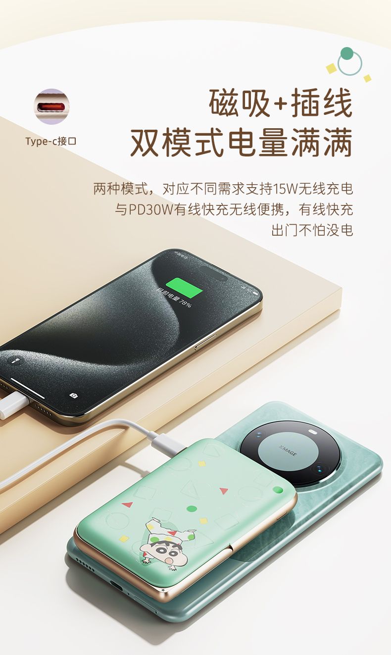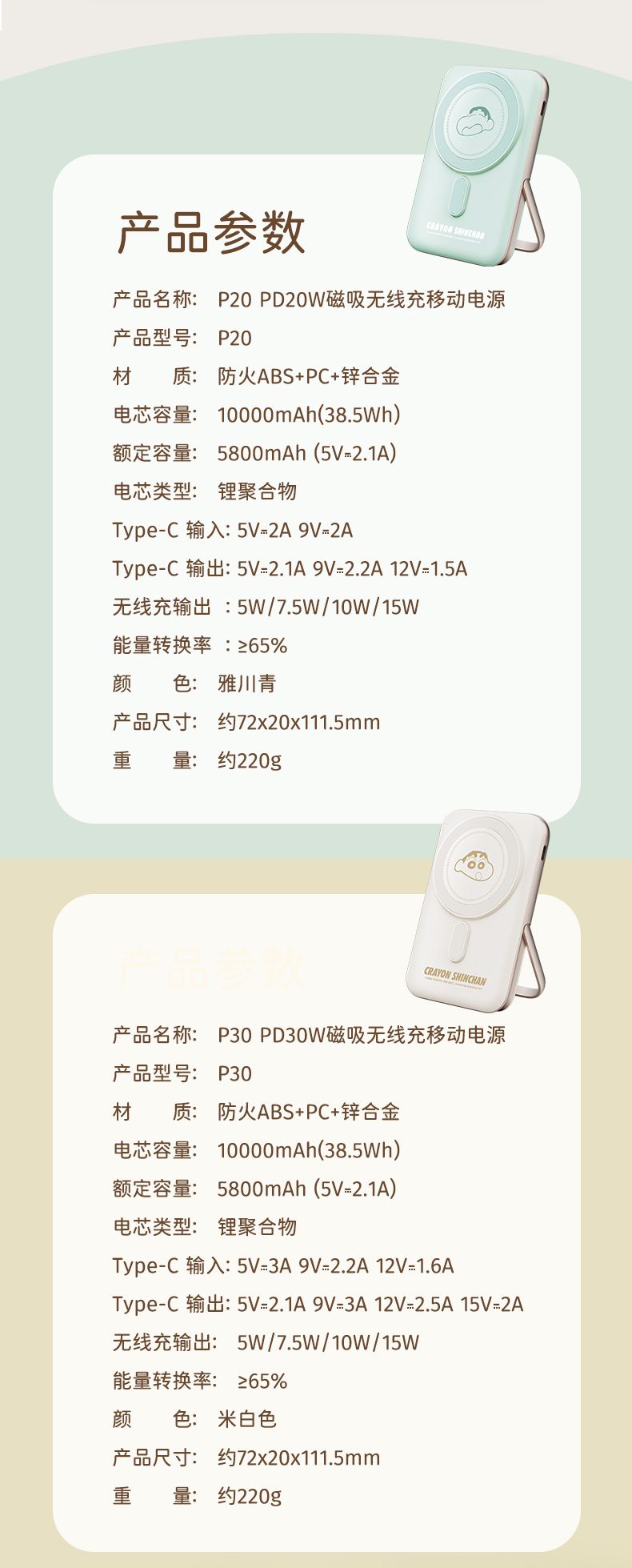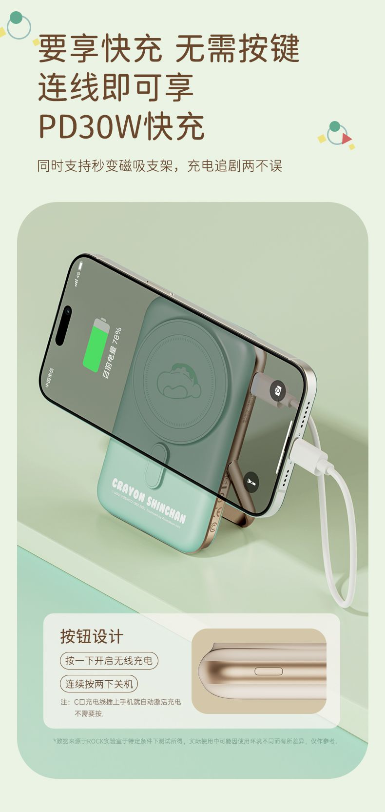商品名称:ROCK 蜡笔小新 P20/P30 PD20W/PD30W磁吸无线充快充移动电源 10000mAh