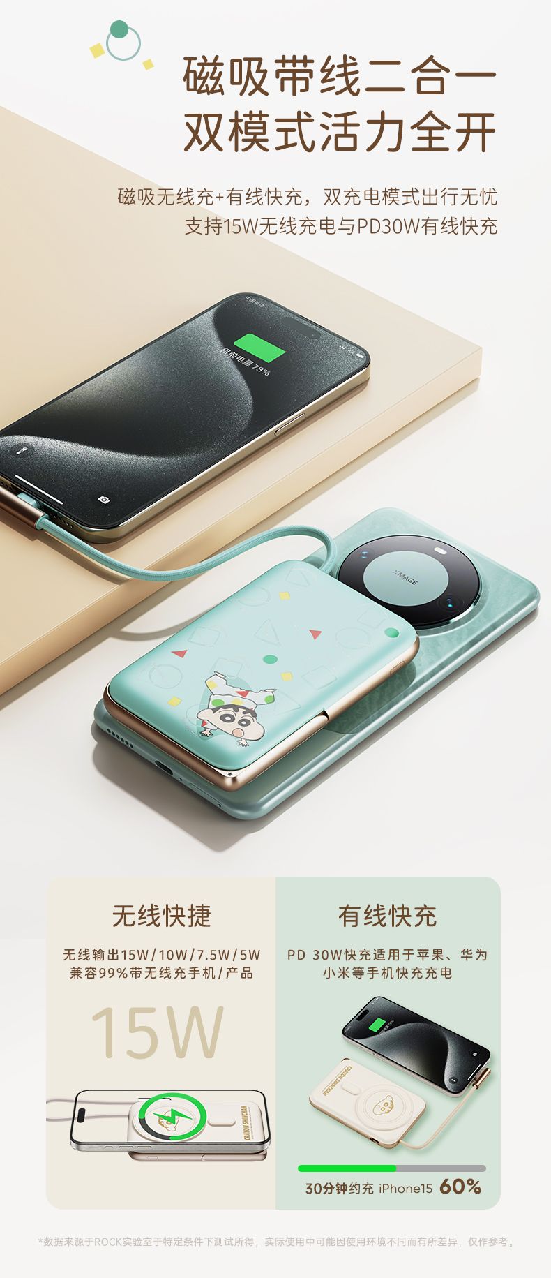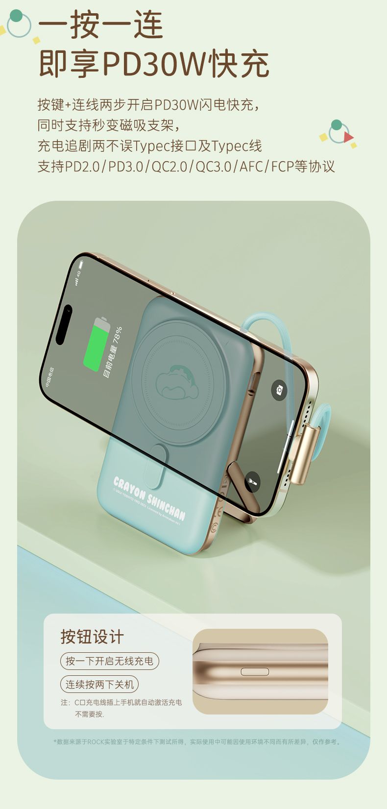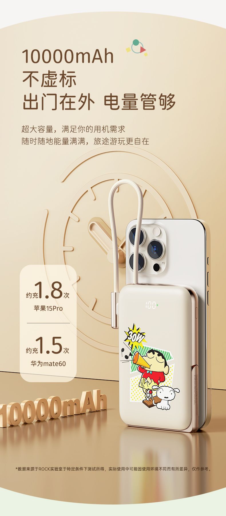 商品名称:ROCK 蜡笔小新 P20/P30Pro PD20W磁吸无线充PD快充移动电源 带线款
