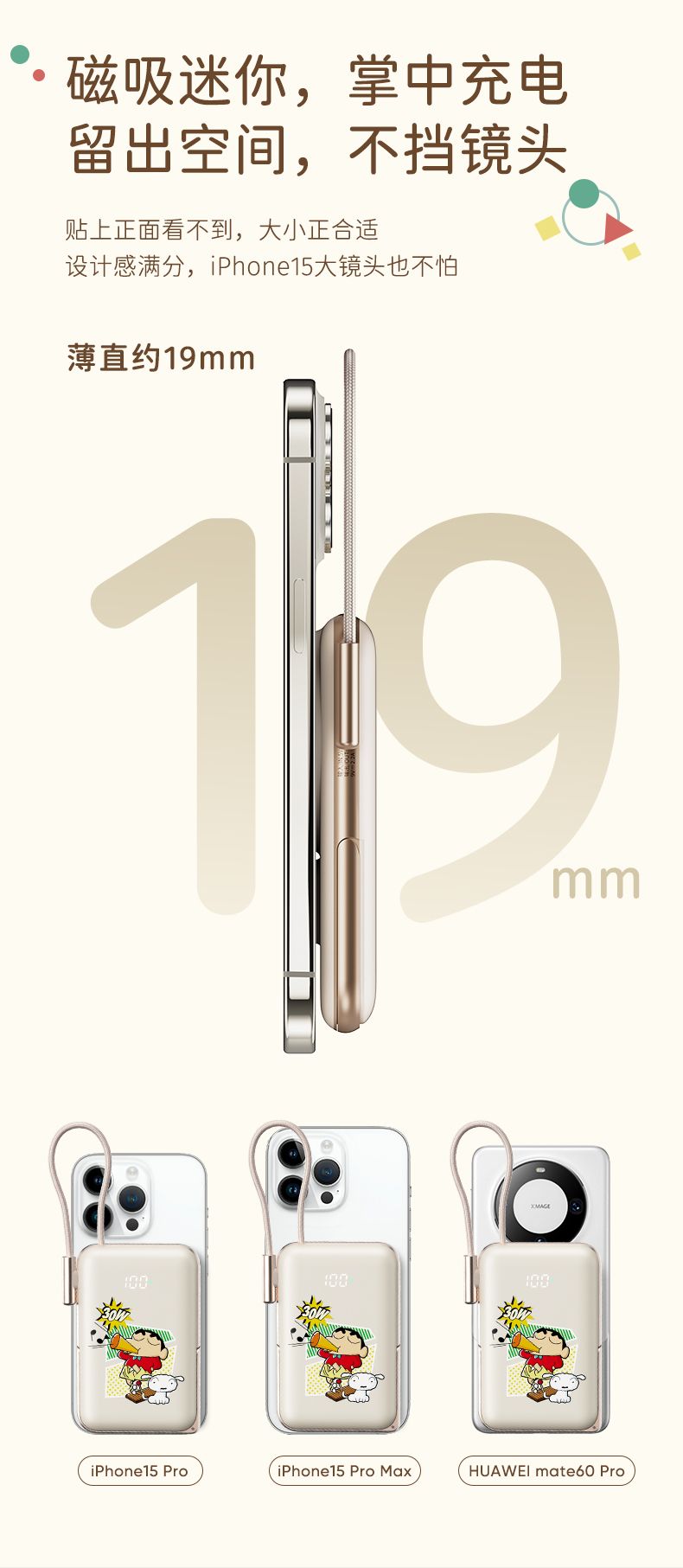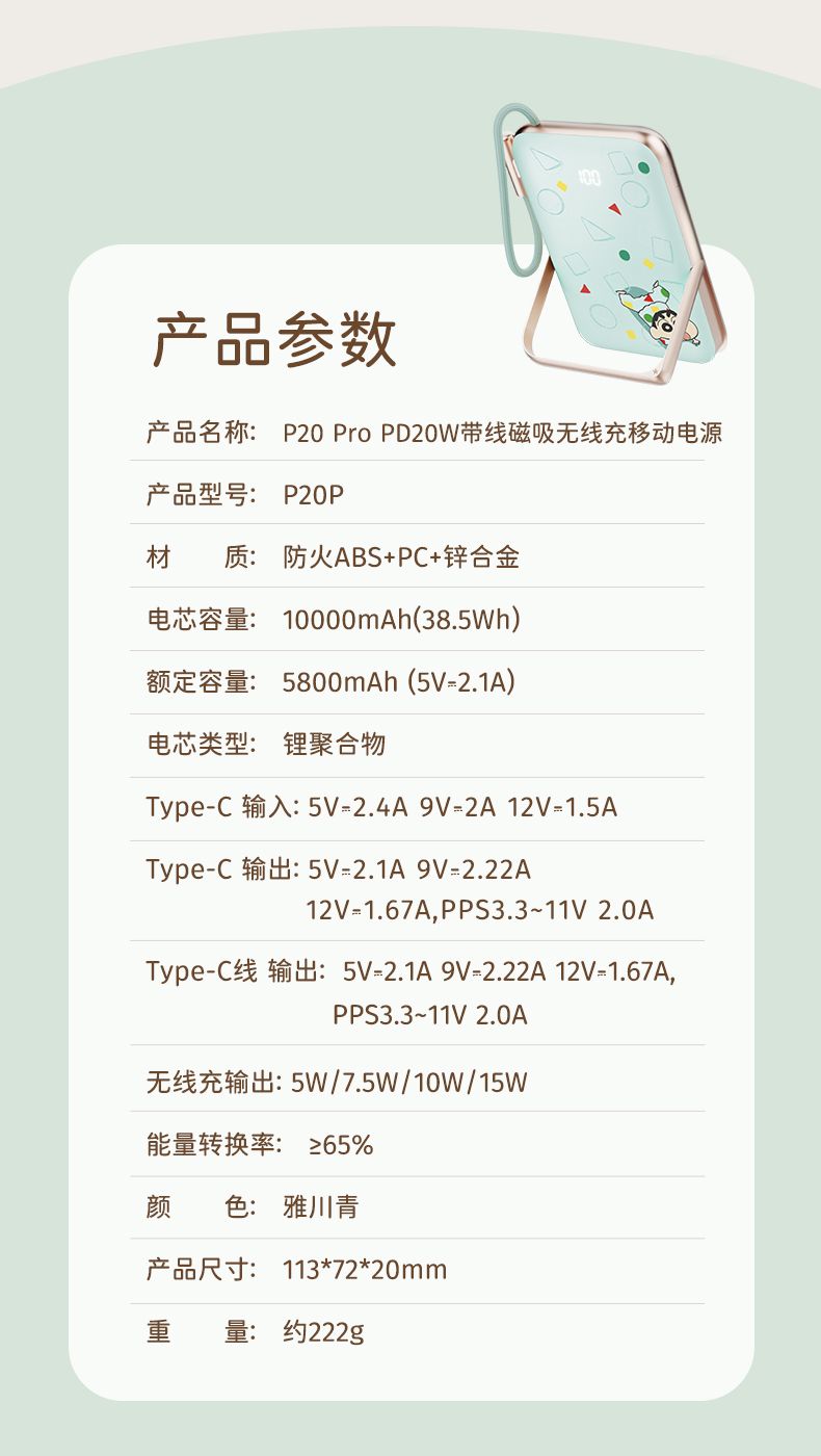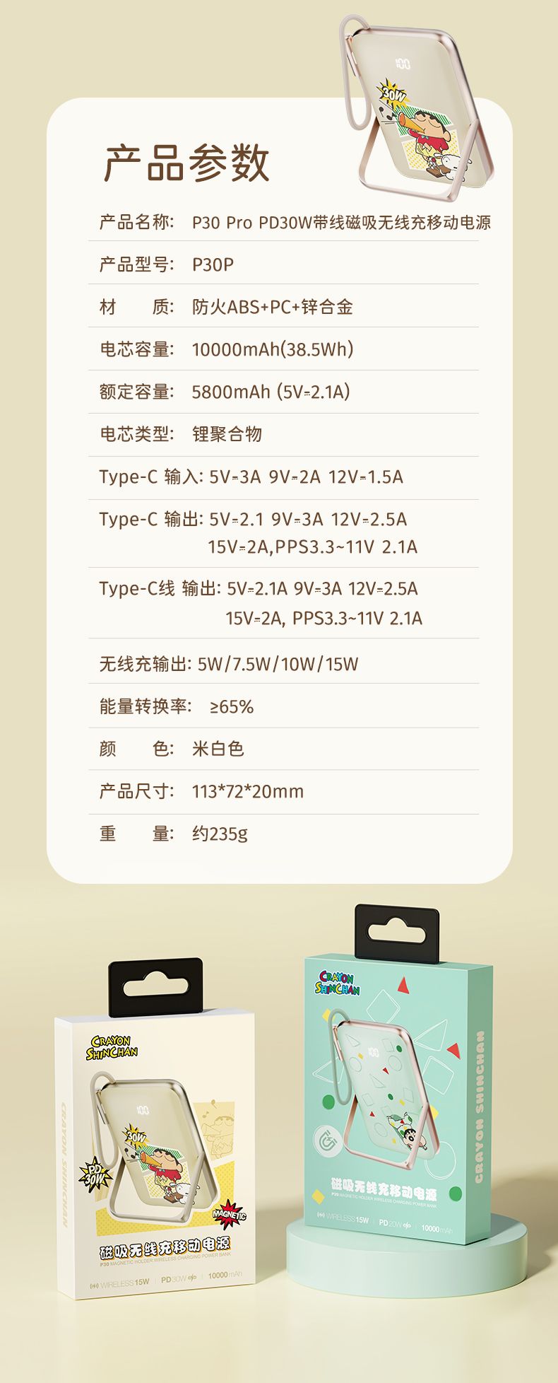 商品名称:ROCK 蜡笔小新 P20/P30Pro PD20W磁吸无线充PD快充移动电源 带线款