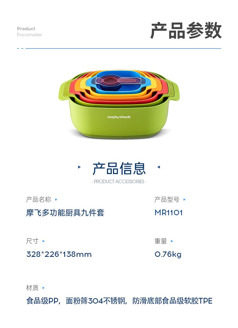 商品名称:摩飞多功能厨具九件套MR1101彩色