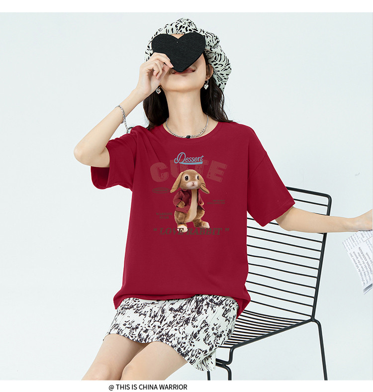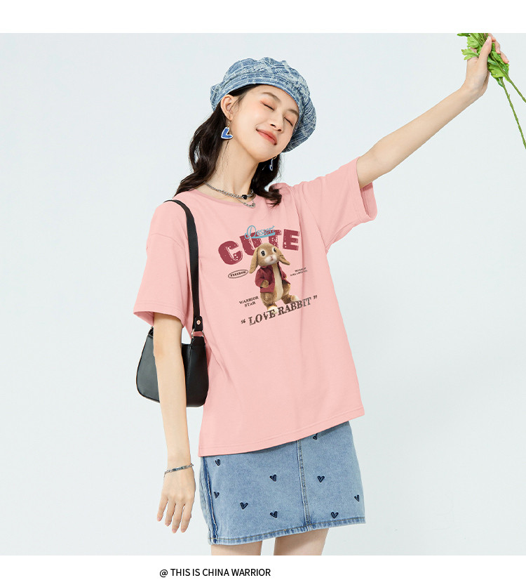 【女装100%棉】女式夏季纯棉短袖T恤舒适宽松休闲上衣女 315475