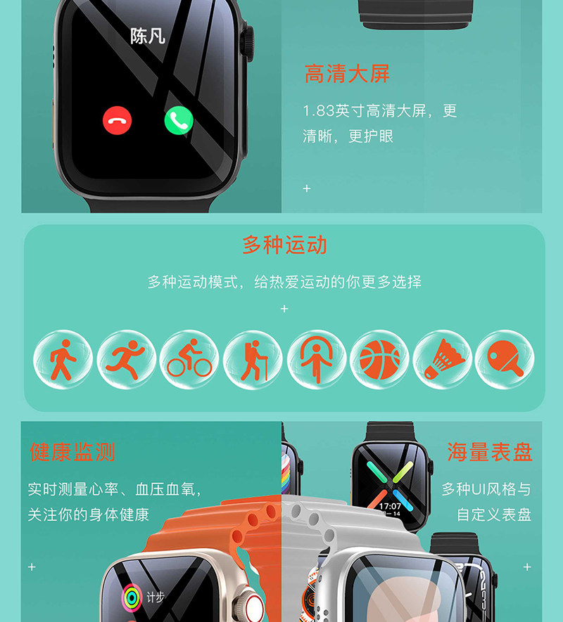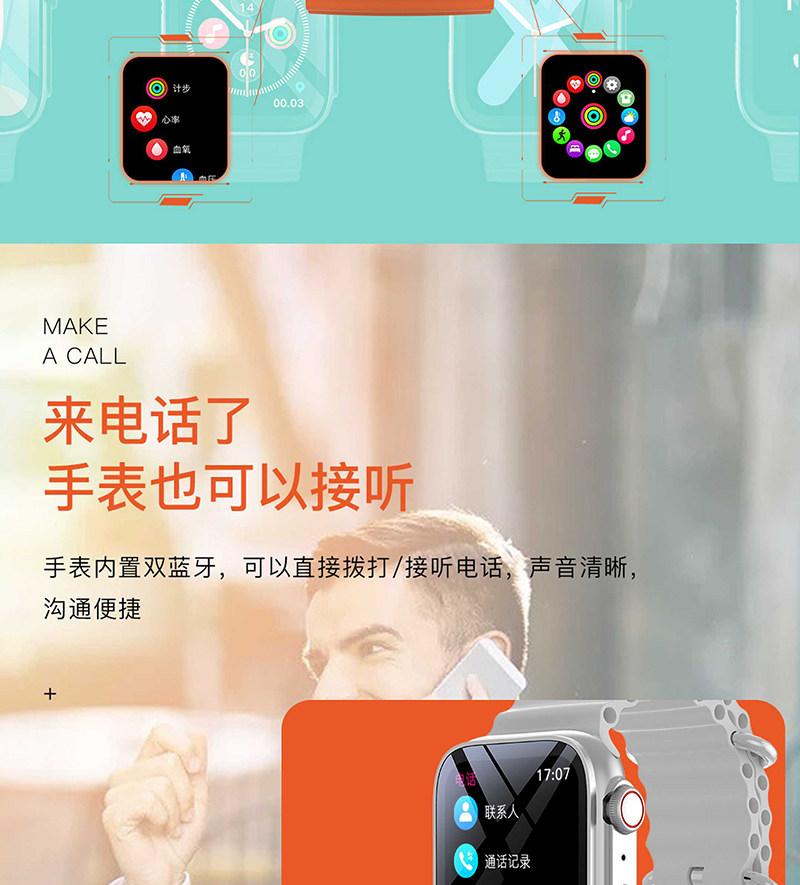 LEFIT勒菲特支付型智能蓝牙通话手表多功能运动计时心理检测音乐防水U8