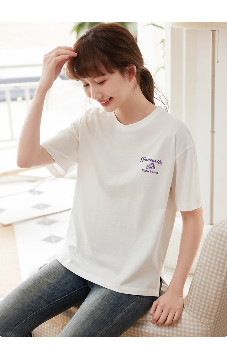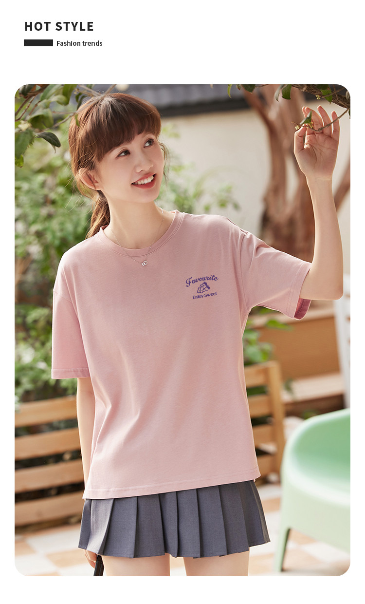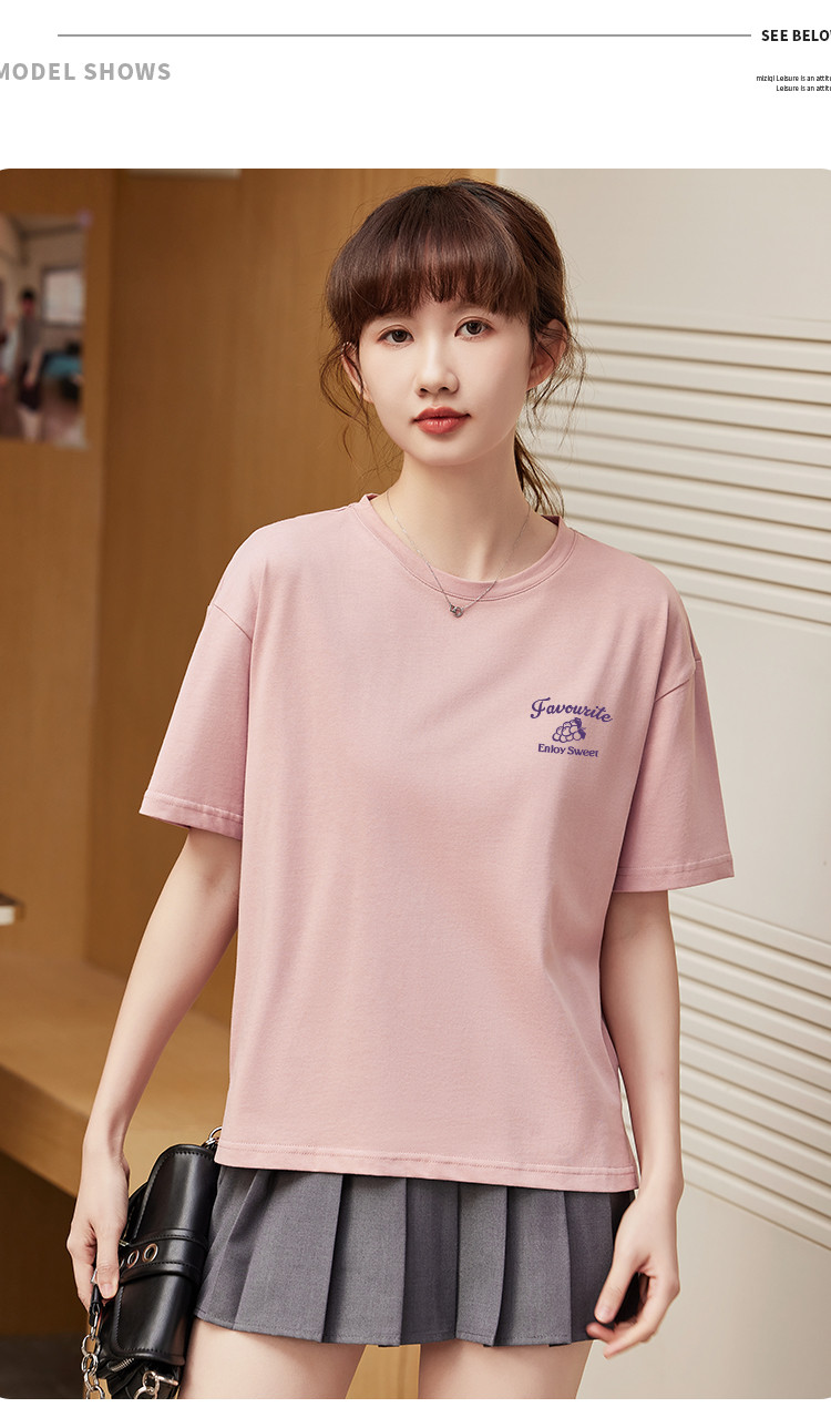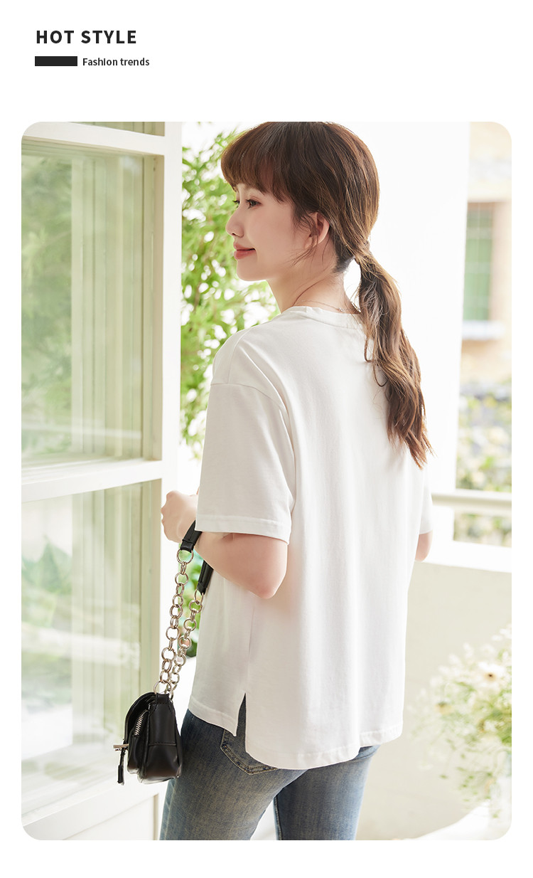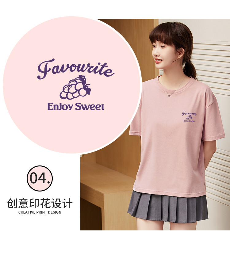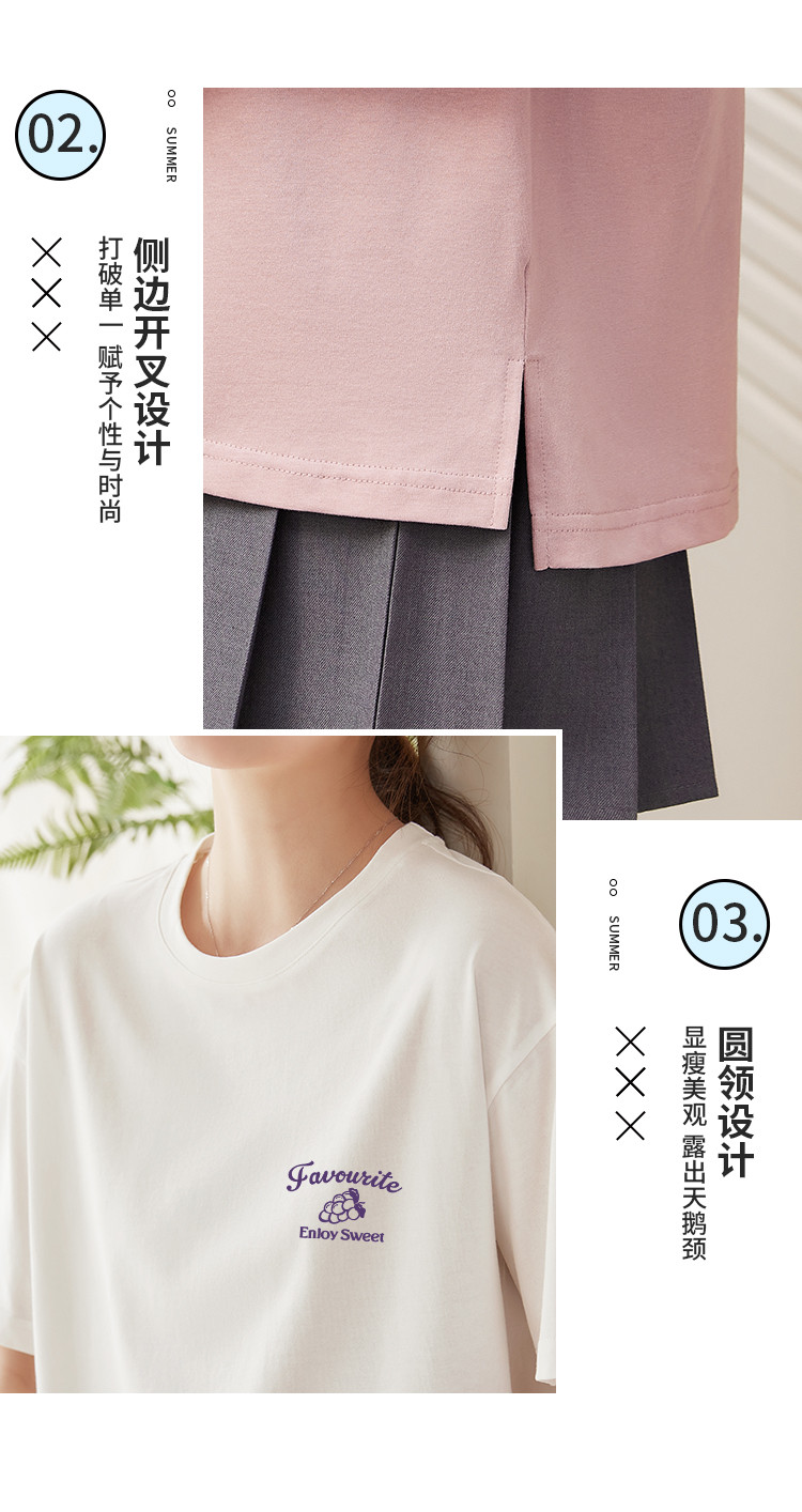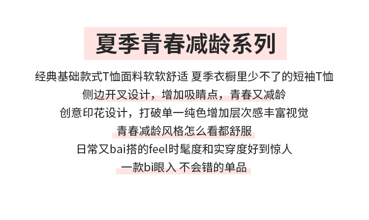 商品名称:米子旗夏季趣味印花女式大码T恤侧边开叉轻薄舒适短袖上衣 233050