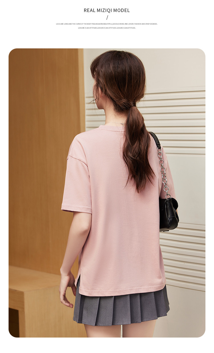 米子旗夏季趣味印花女式大码T恤侧边开叉轻薄舒适短袖上衣 233050