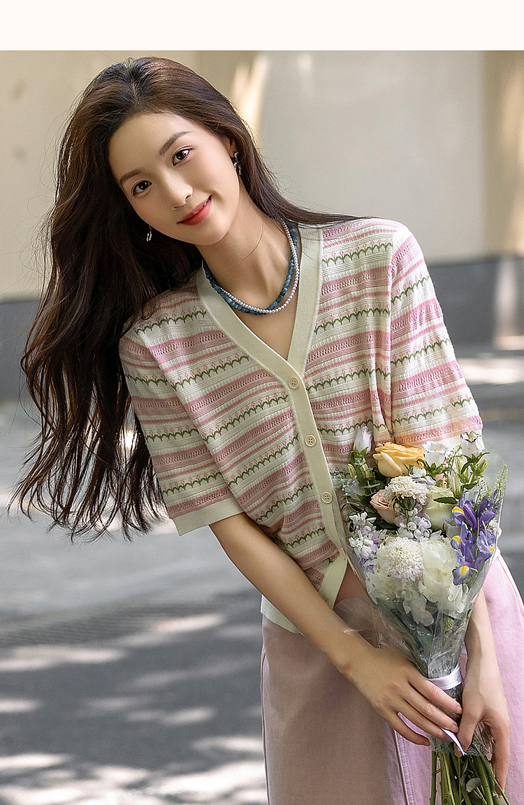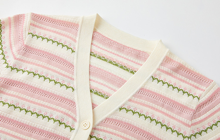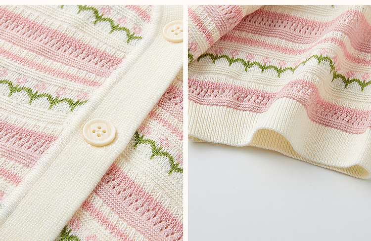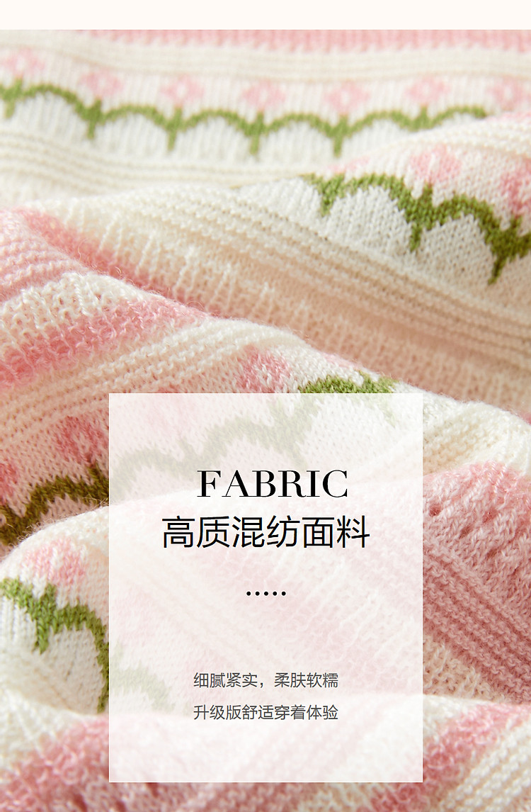 【招牌软糯】秋法式淑女V领撞色提花开衫弹力藏肉针织衫女上衣 238401