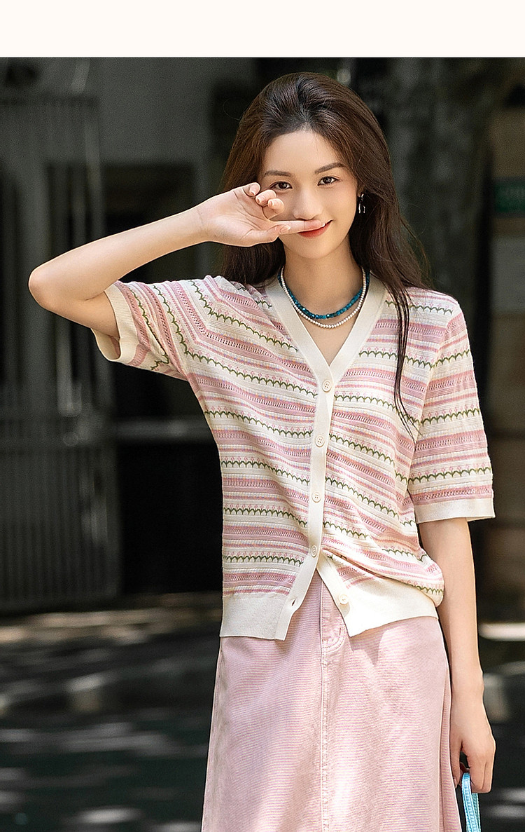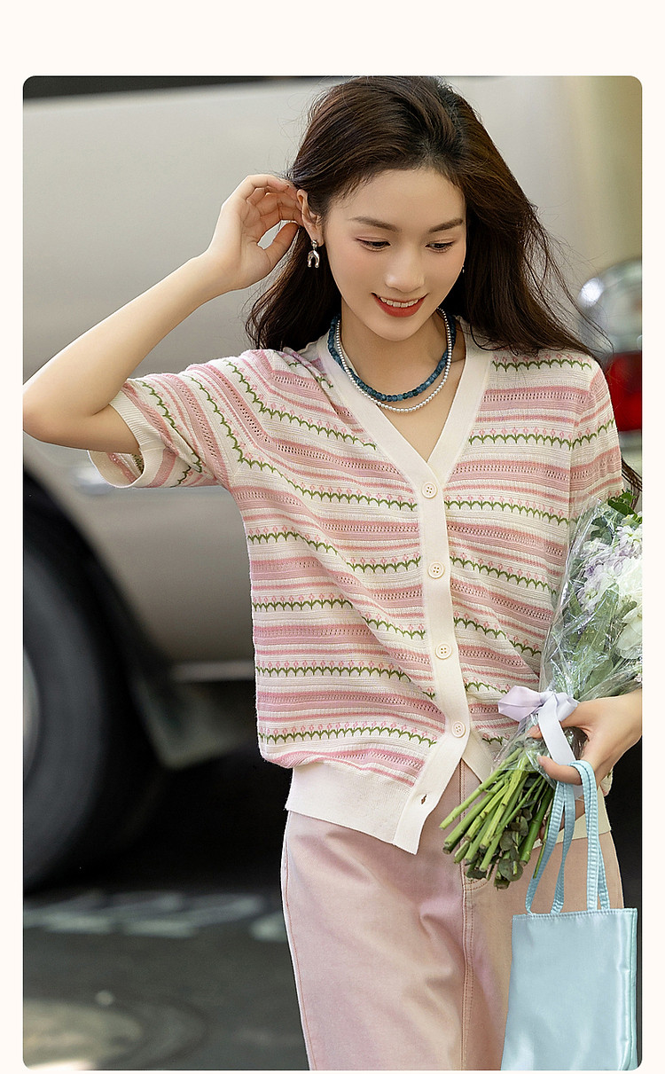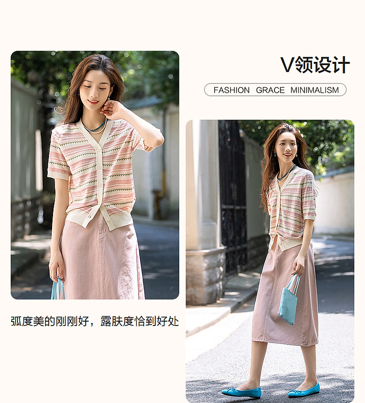 商品名称:【招牌软糯】秋法式淑女V领撞色提花开衫弹力藏肉针织衫女上衣 238401
