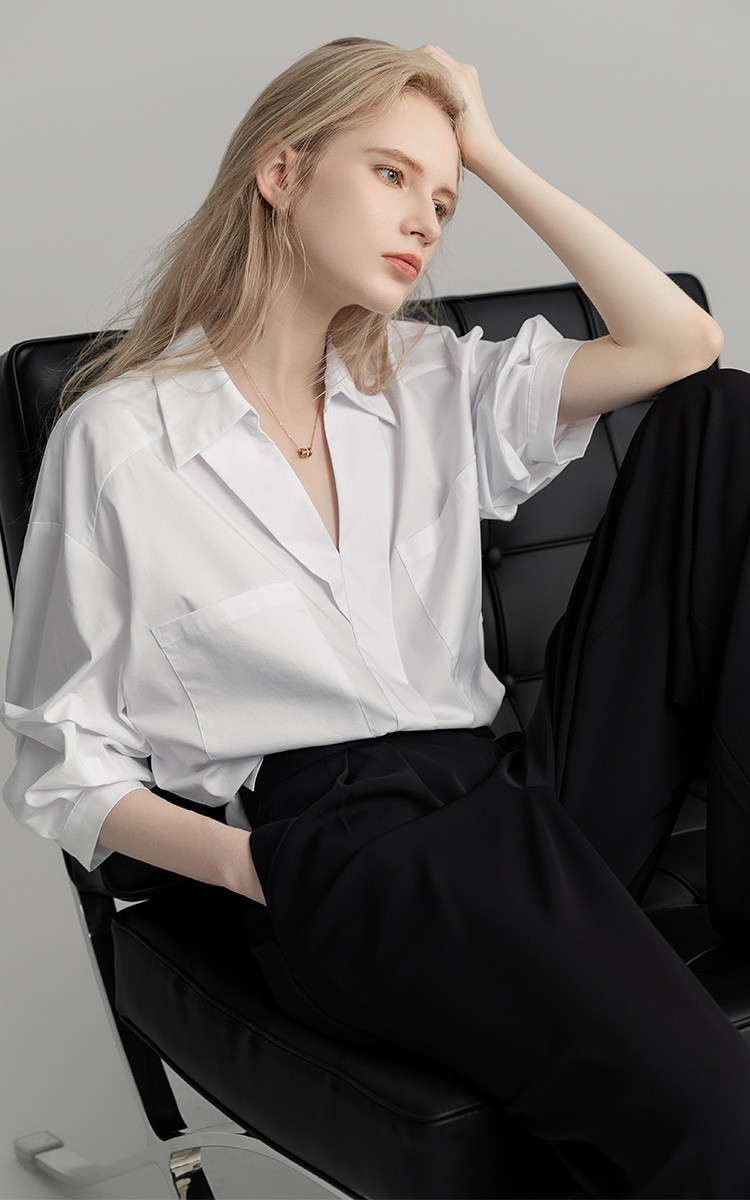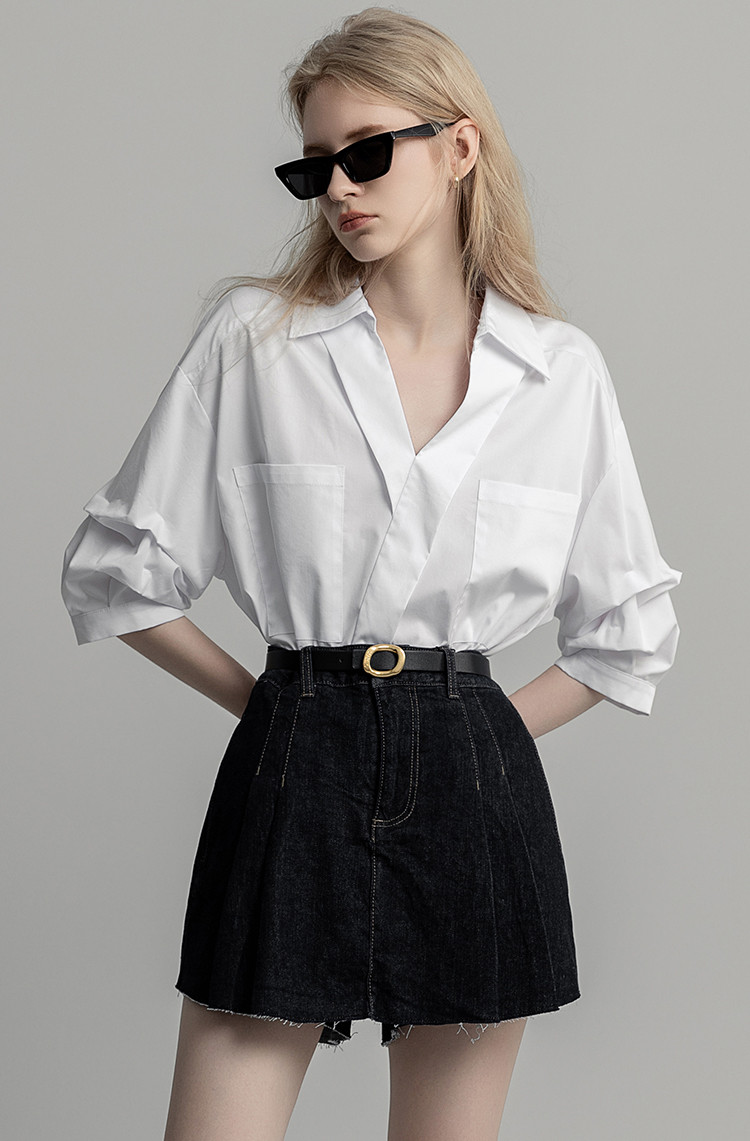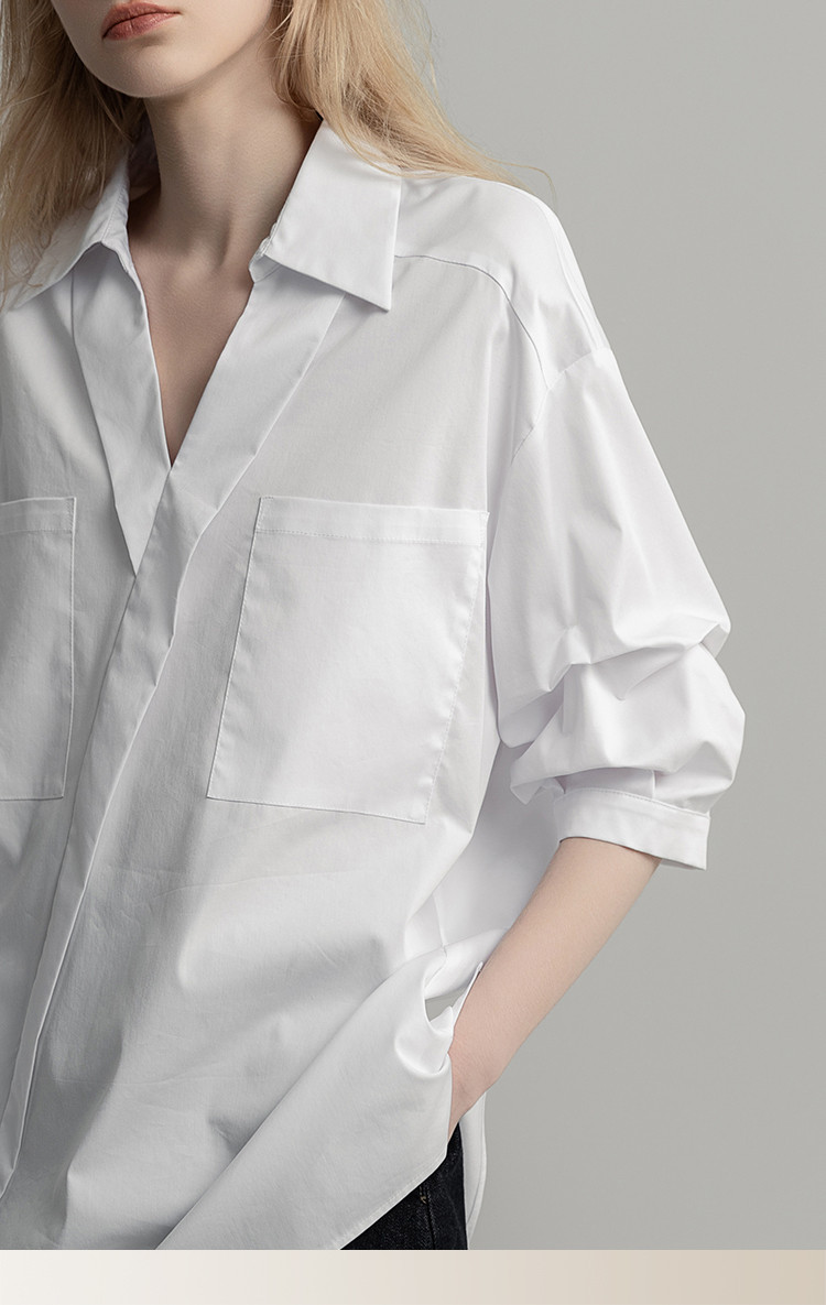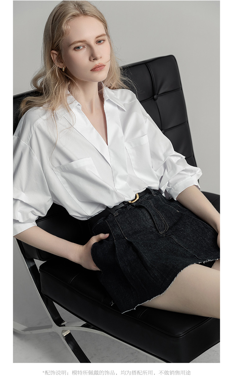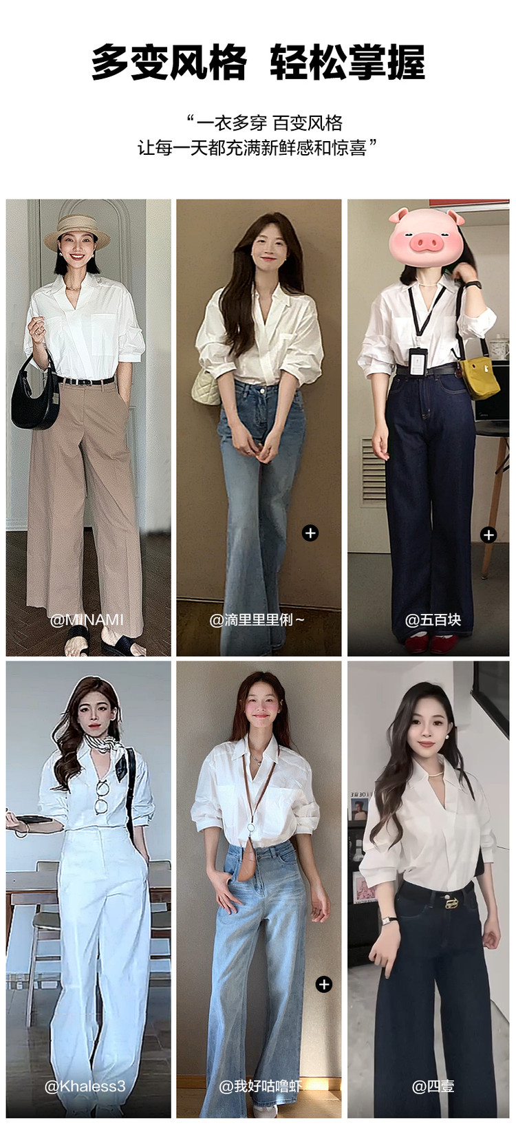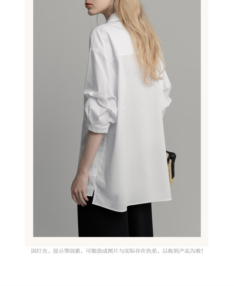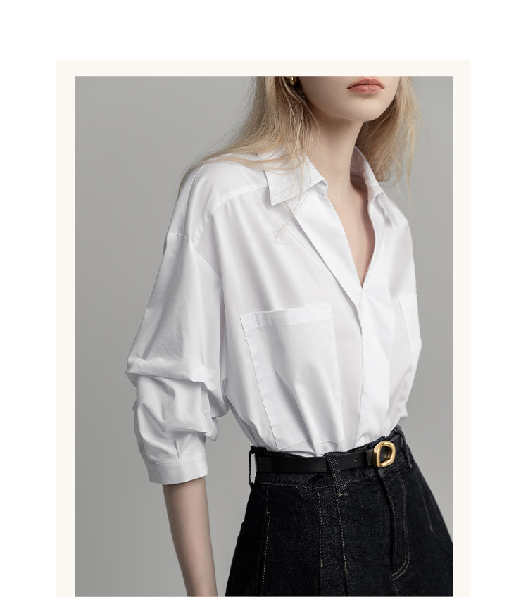 商品名称:【高智通勤】夏静奢书卷气衬衫V字翻领堆堆袖舒适藏肉衬衣女上衣 277761