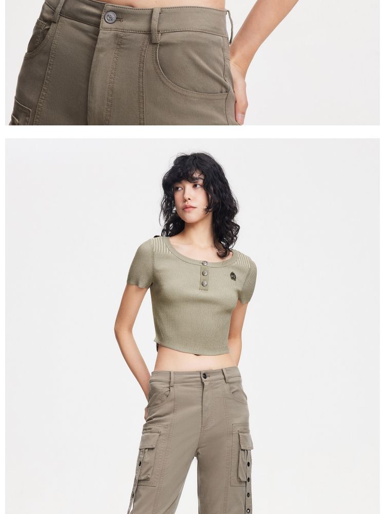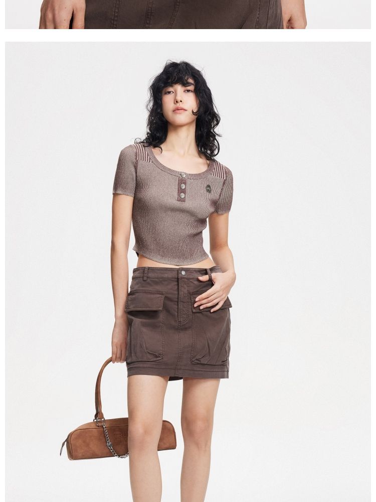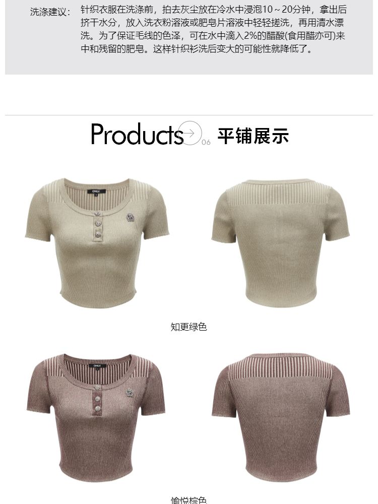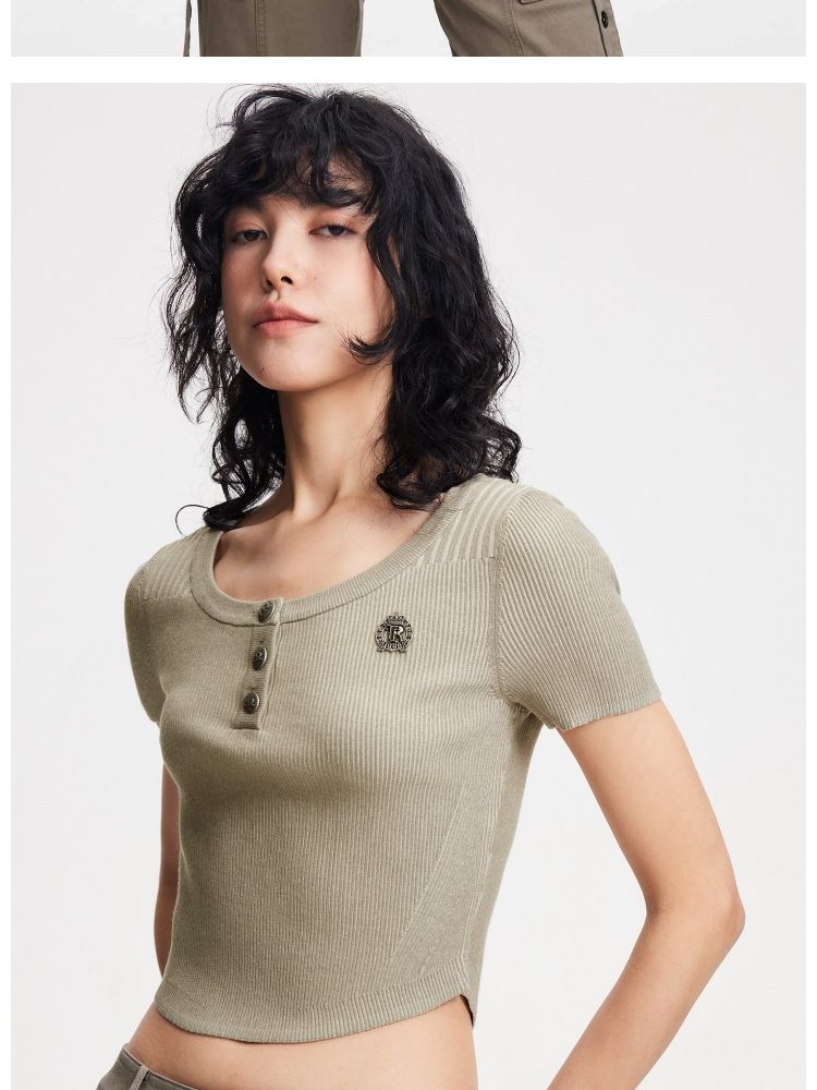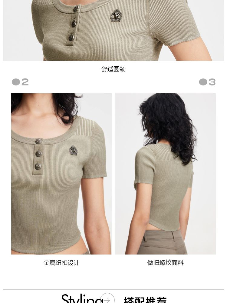 商品名称:【做旧工艺】春季修身圆领短款短袖针织衫女 461594