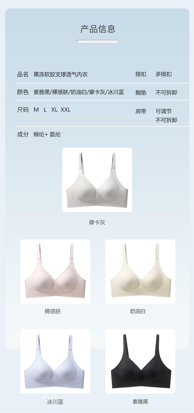 商品名称:【裸感超薄文胸】无痕高弹果冻胶软支撑聚拢无钢圈透气内衣文胸 172574