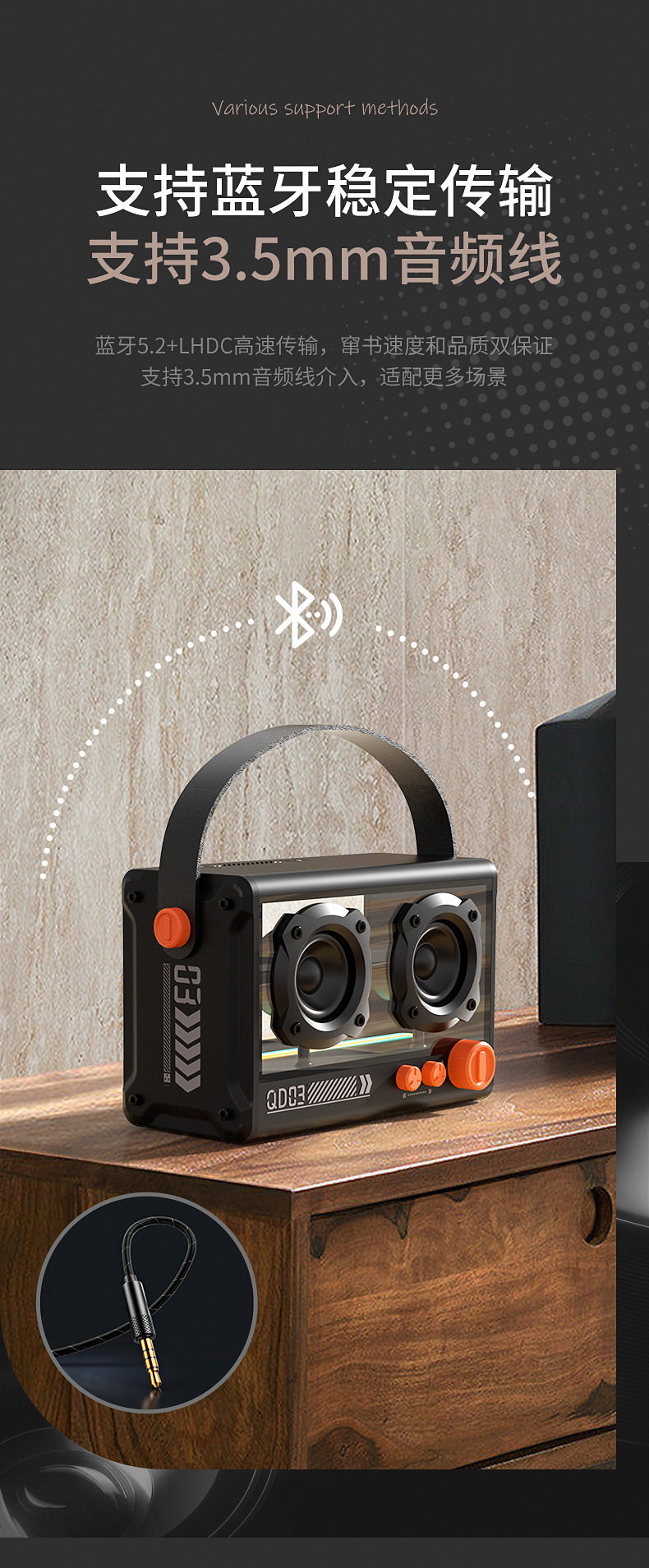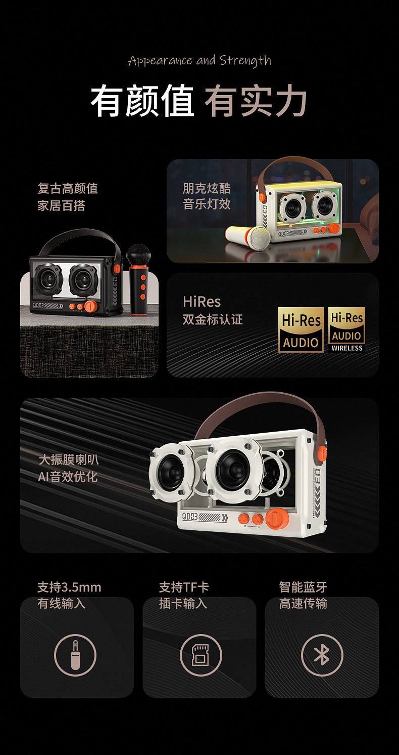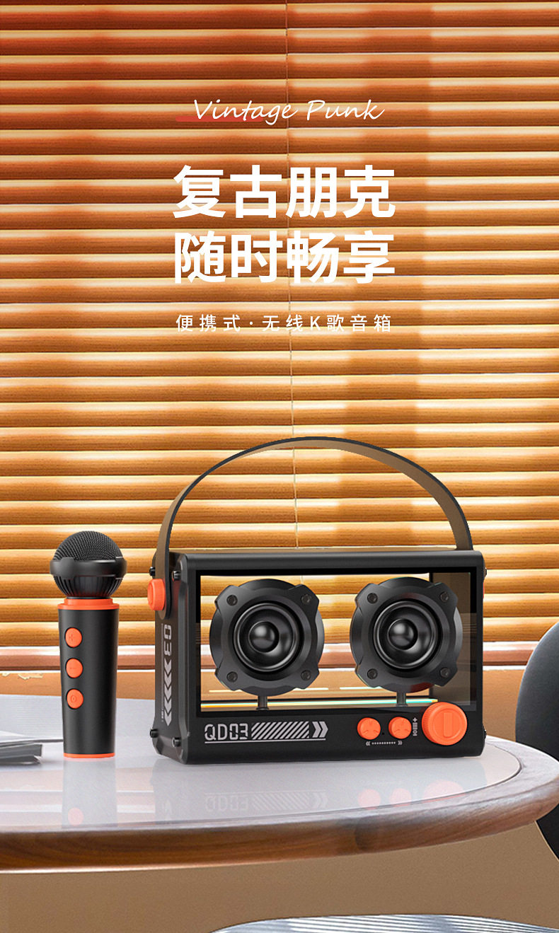 勒菲特朋克风机甲无线K歌蓝牙音箱家用迷你麦克风音响套装户外便携QD03