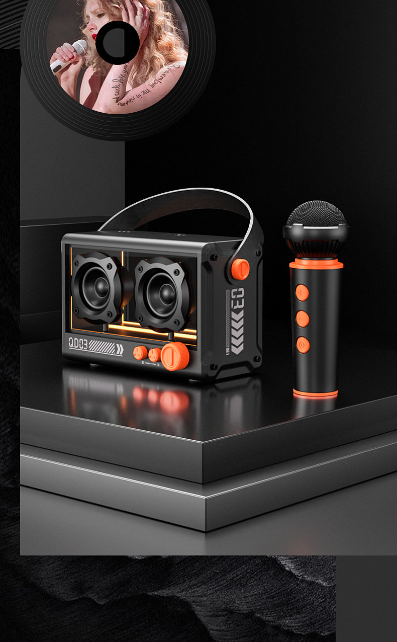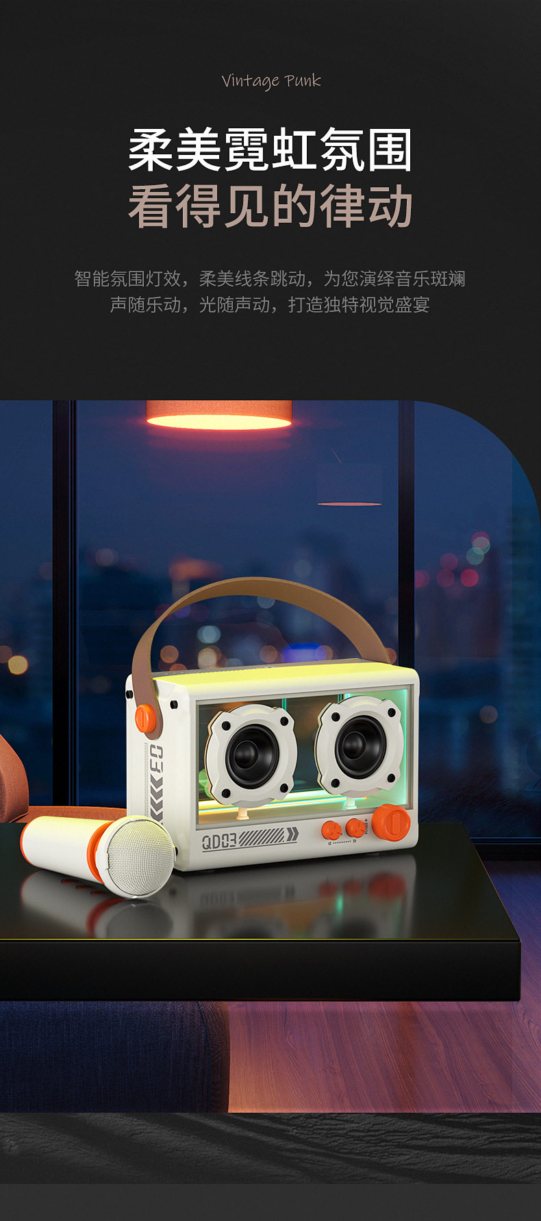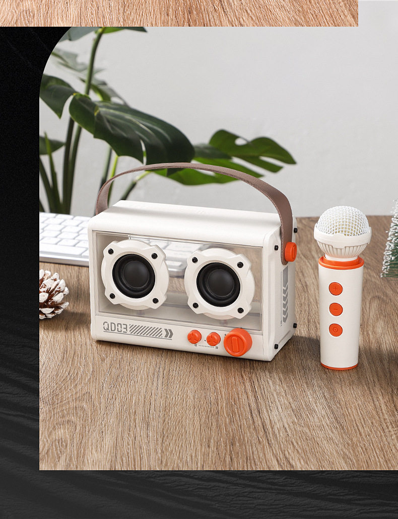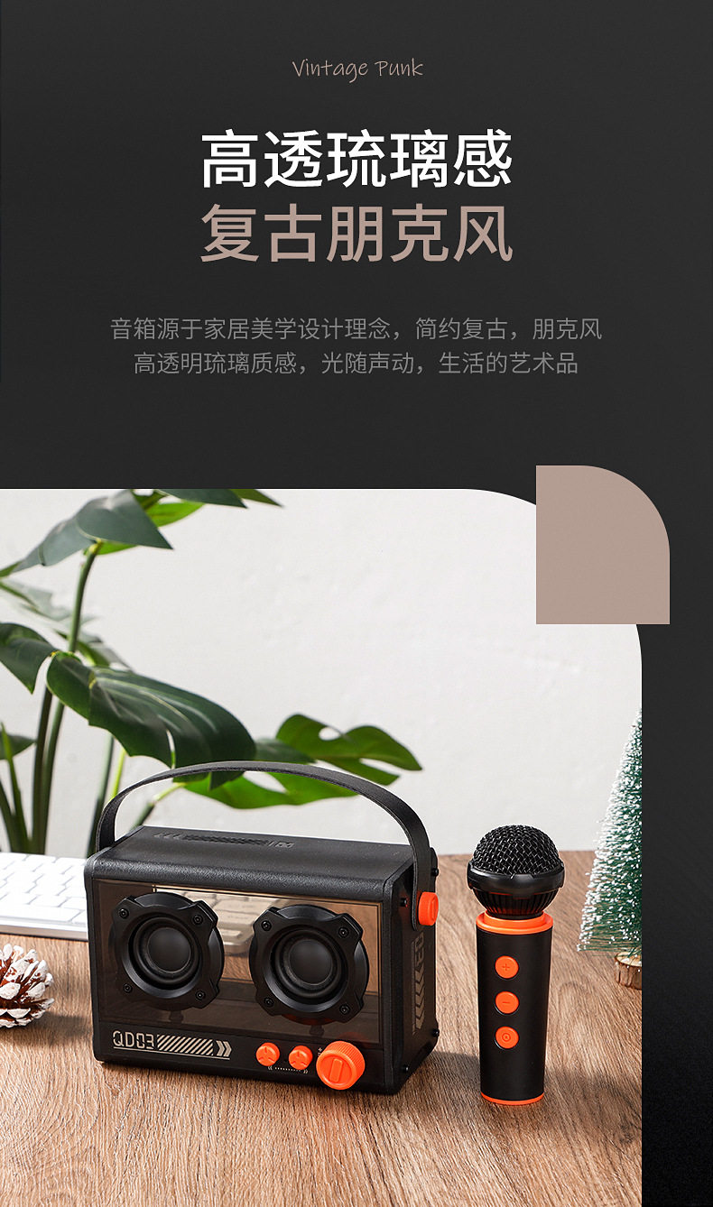商品名称:勒菲特朋克风机甲无线K歌蓝牙音箱家用迷你麦克风音响套装户外便携QD03