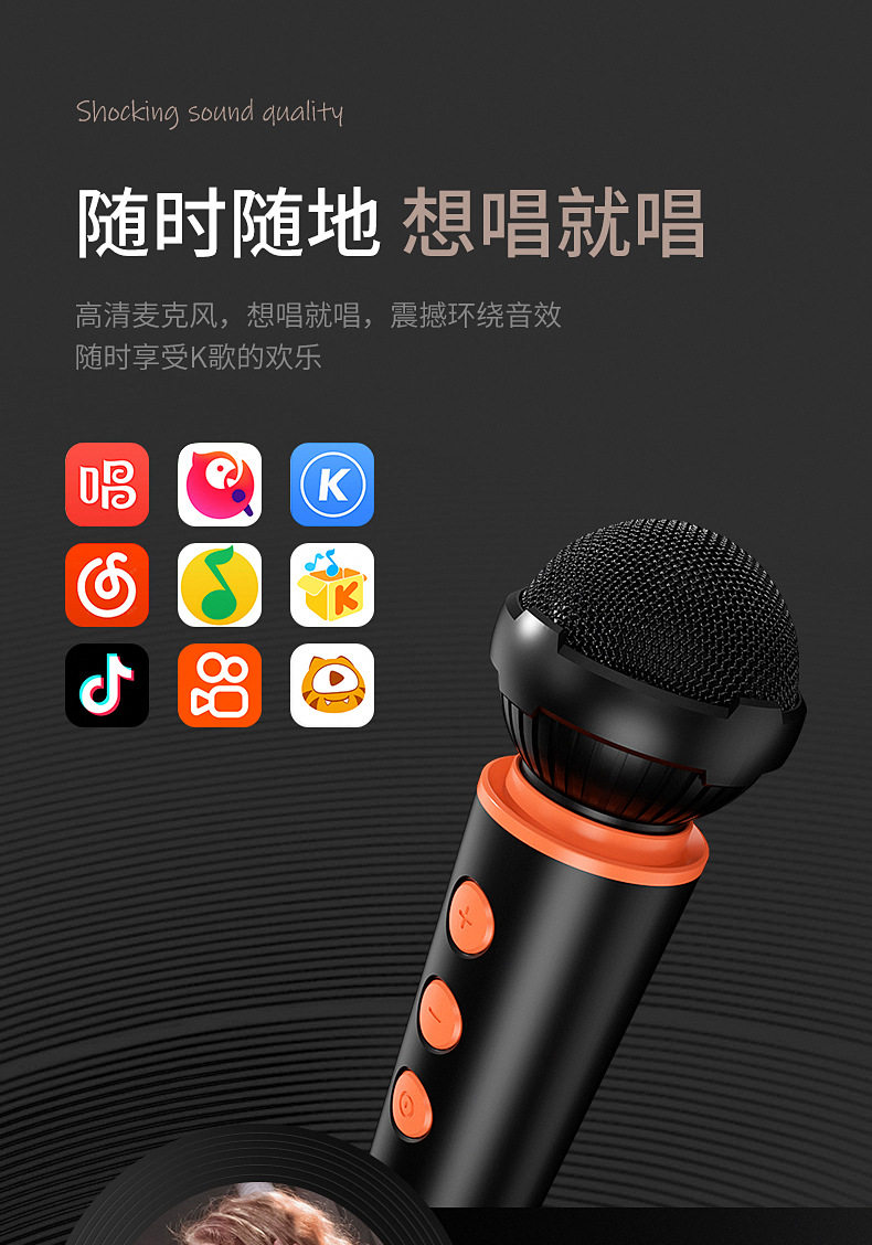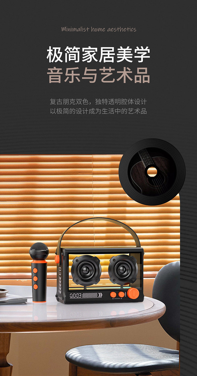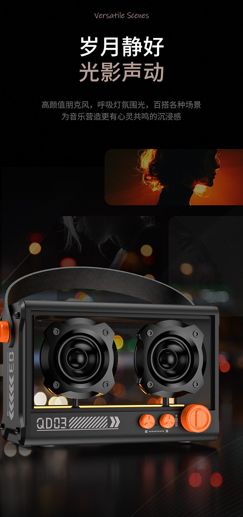 商品名称:勒菲特朋克风机甲无线K歌蓝牙音箱家用迷你麦克风音响套装户外便携QD03
