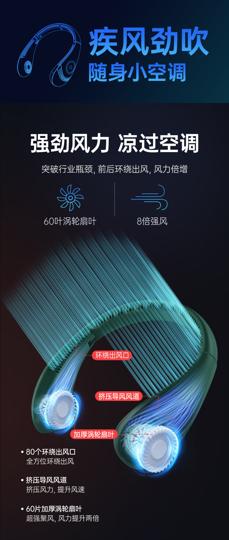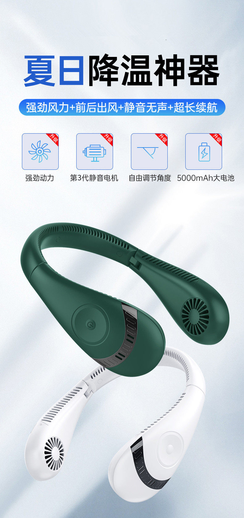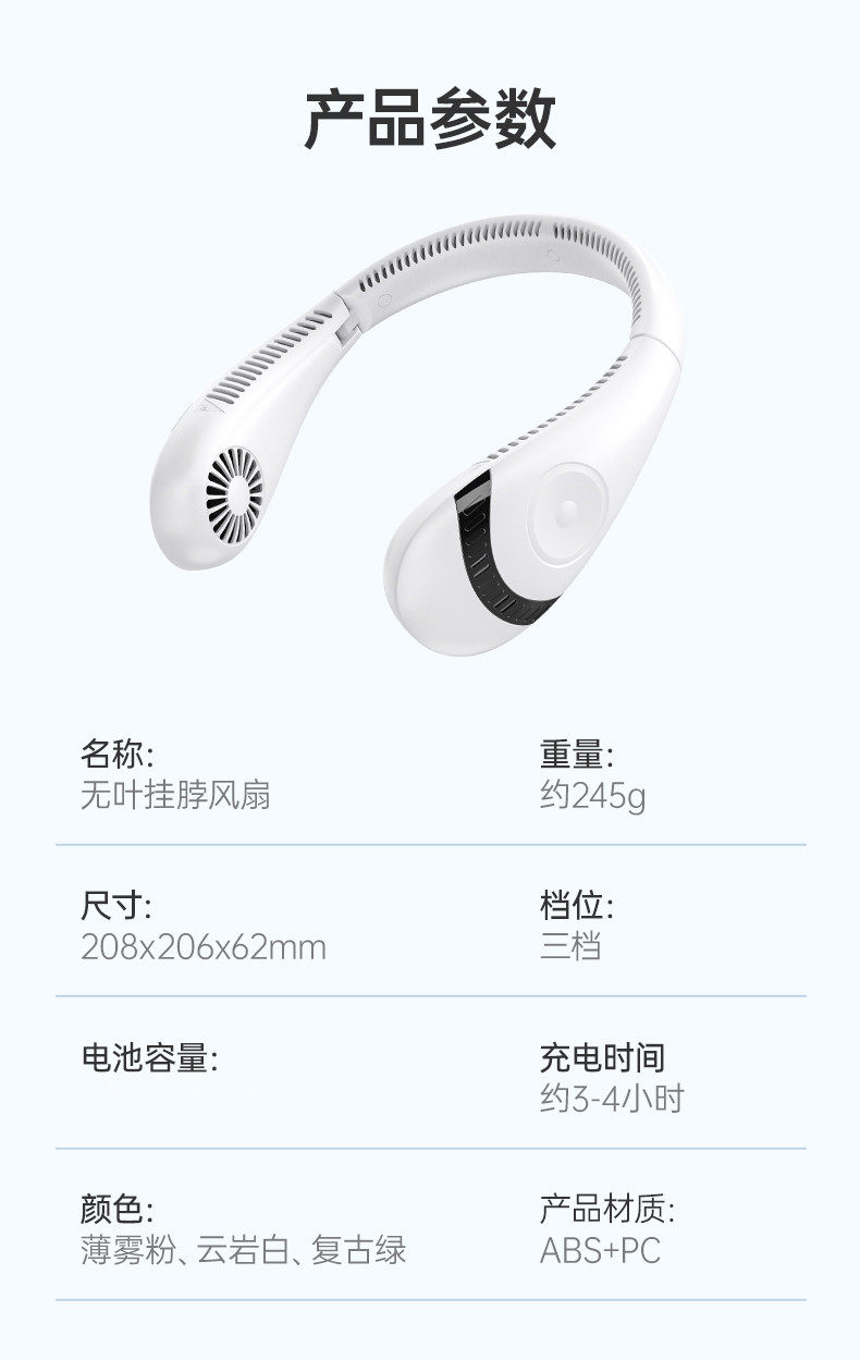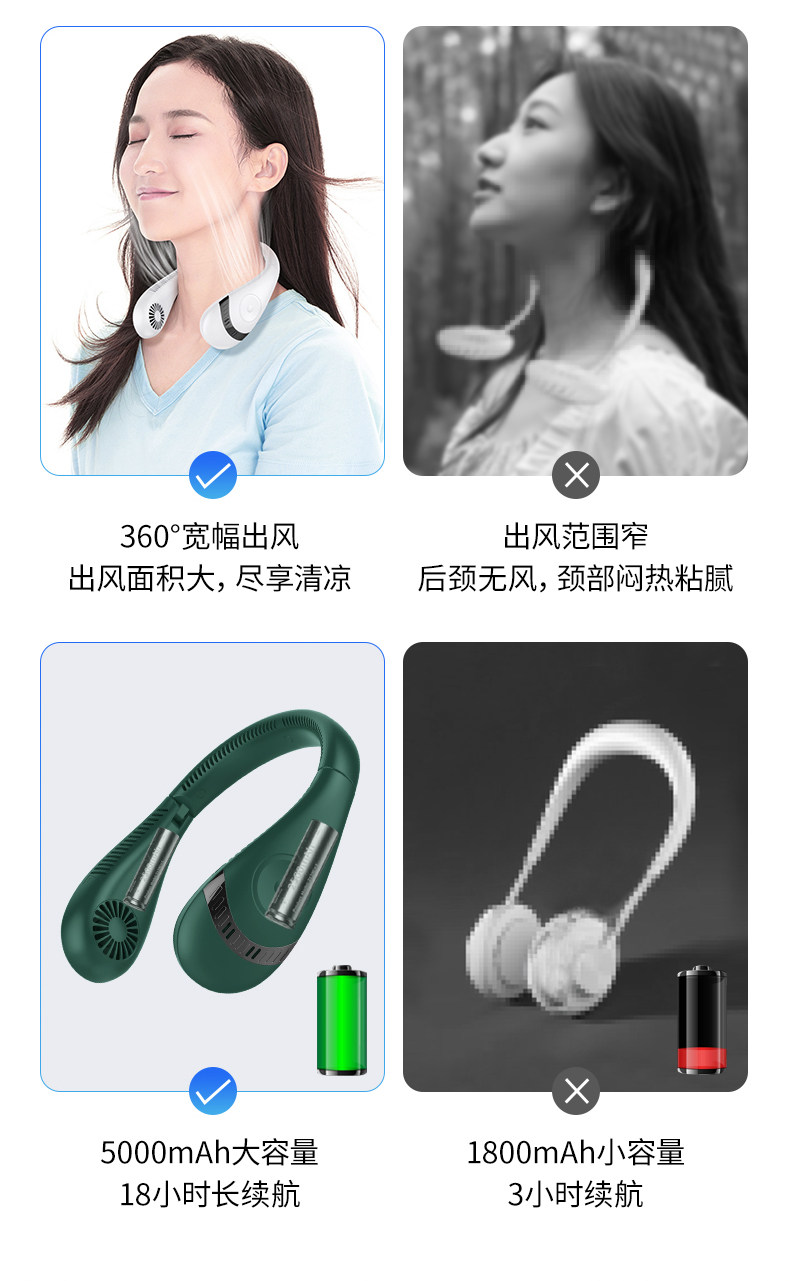 商品名称:LEFIT勒菲特挂脖风扇小型宿舍制冷便携小风扇长续航充电风扇H11