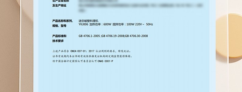 商品名称:一刻间(oneqbaby)破壁机 YKJ006