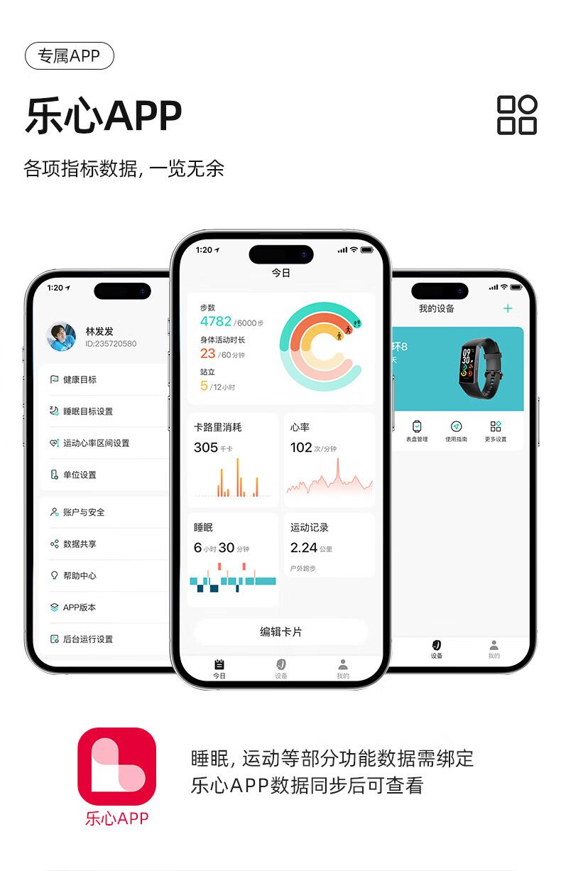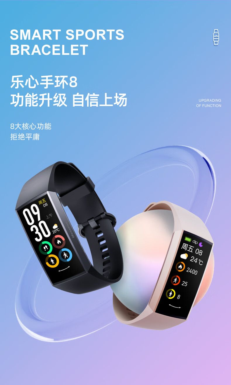 商品名称:乐心手环8 血氧心率睡眠监测体温测量智能手环运动手环震动闹钟防水 节日送礼生日礼物