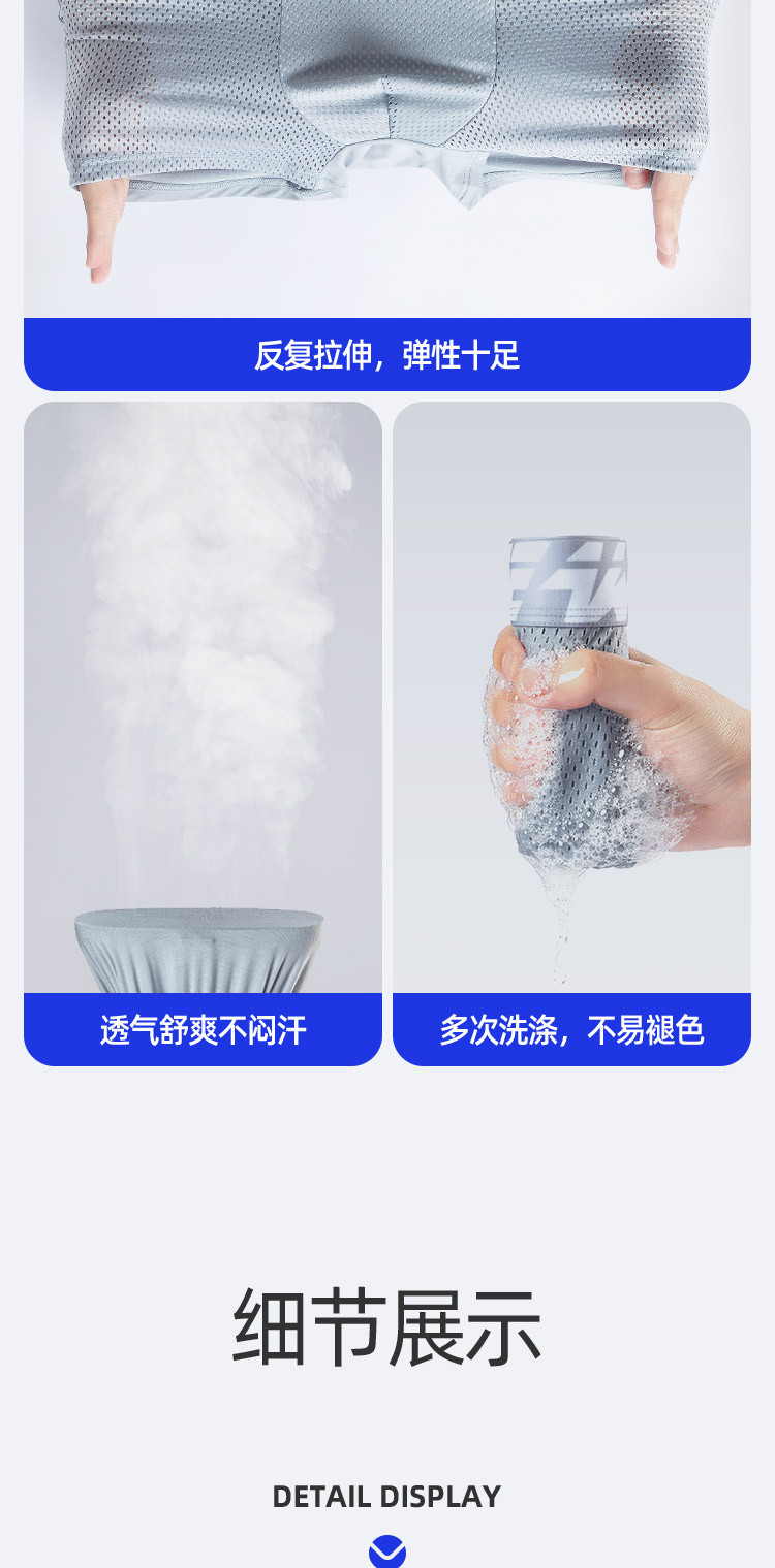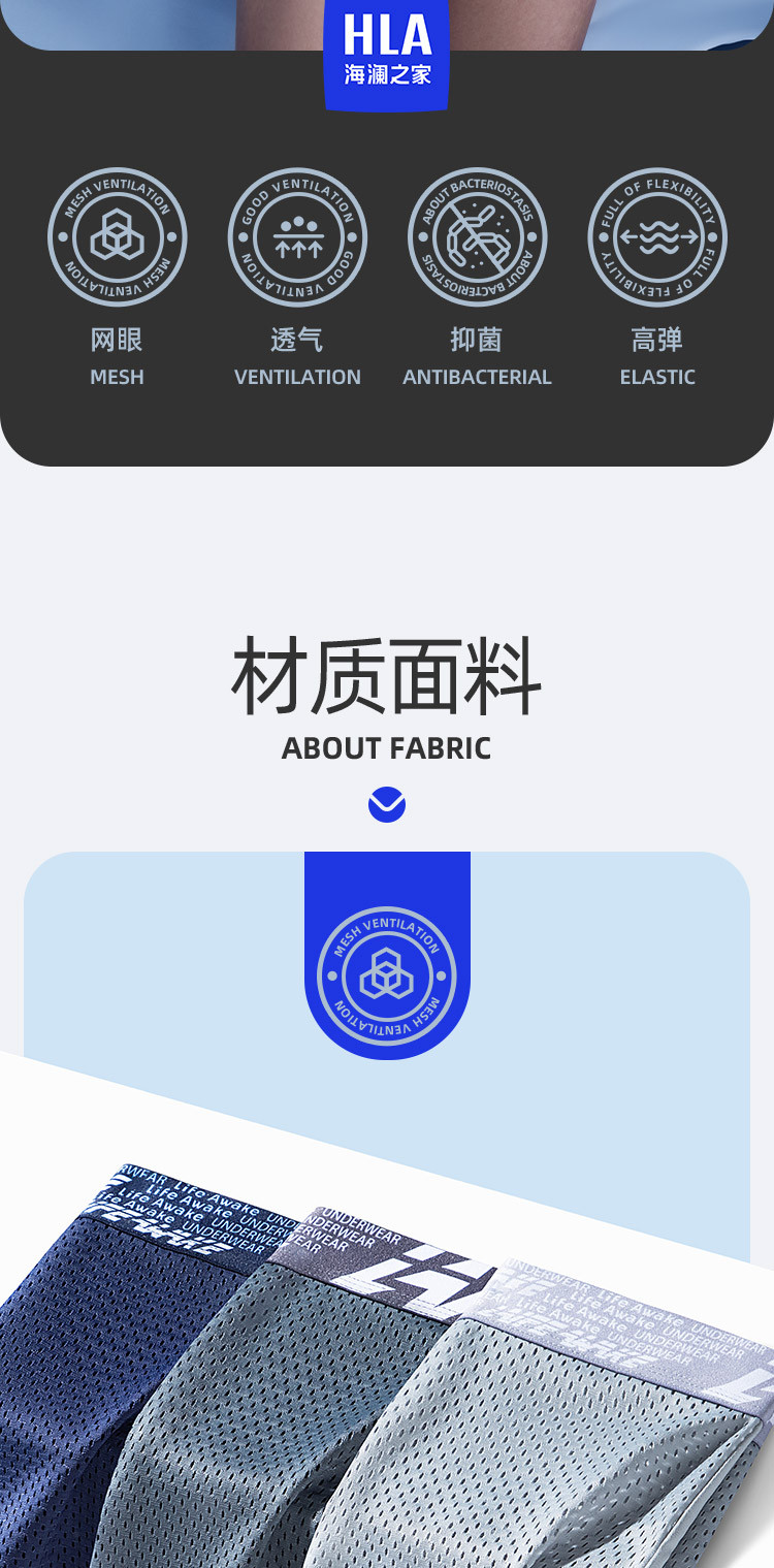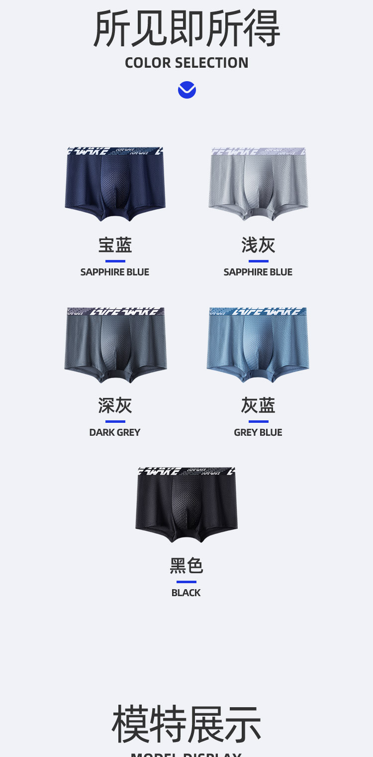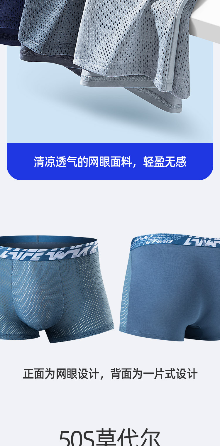 商品名称:【冰丝网眼透气】3条装男士莫代尔内裤男夏季平角四角运动短裤衩 382874
