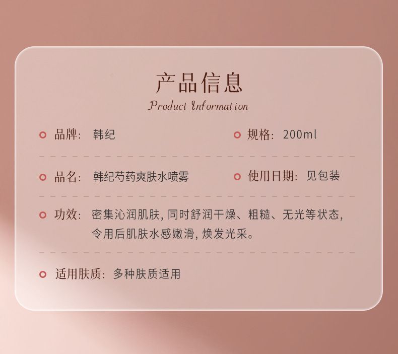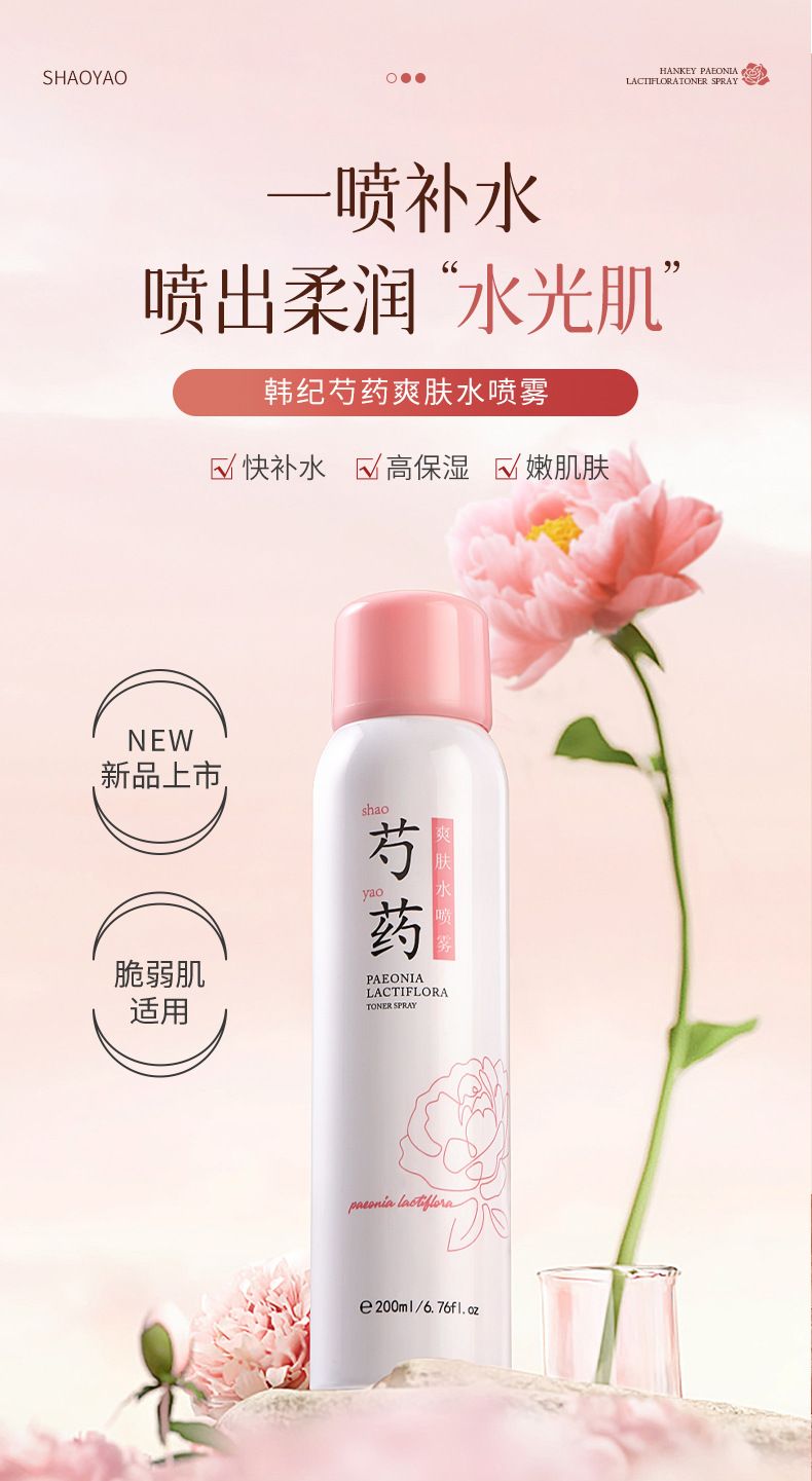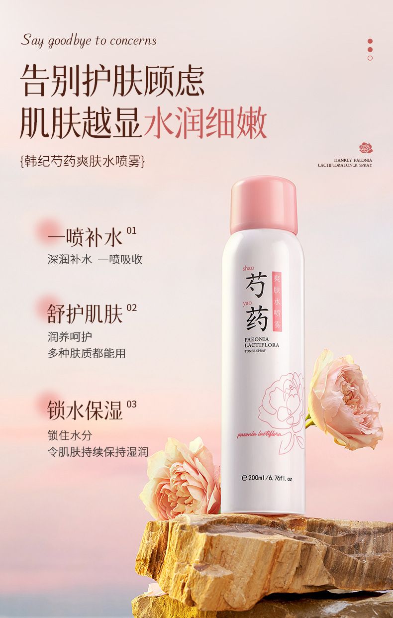 商品名称:Hankey/韩纪 芍药爽肤水喷雾200ml 锁水保湿舒润干燥