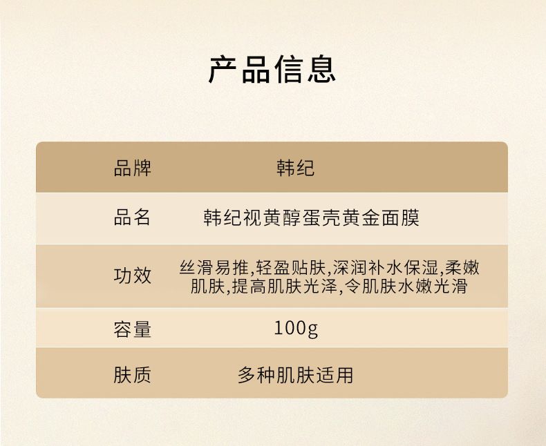 商品名称:Hankey/韩纪 视黄醇蛋壳黄金面膜100g 水润补水保湿涂抹面膜