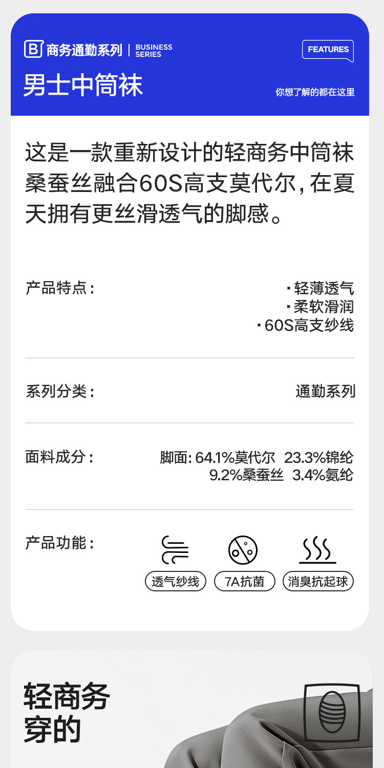 商品名称:【7A抗菌防臭】6双装夏季薄款男士中筒袜子莫代尔透气商务男袜 644570