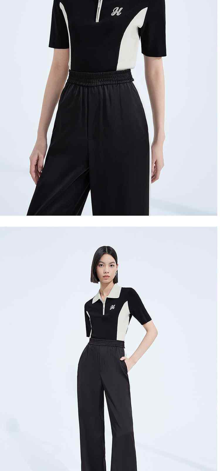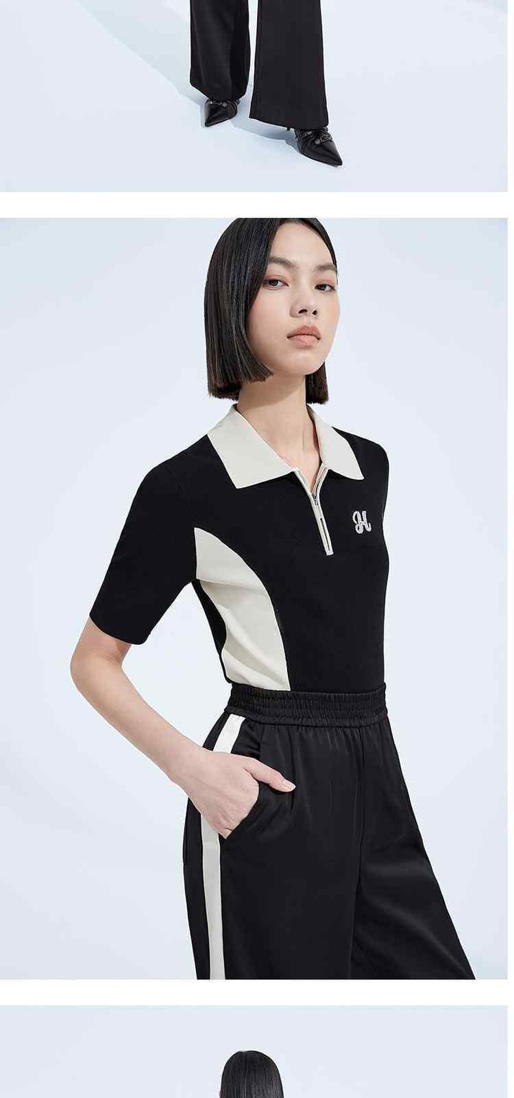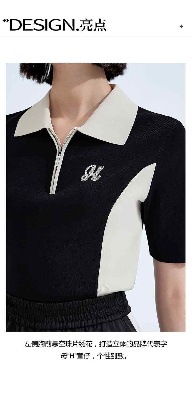 商品名称:春装 撞色绣珠片休闲Polo领短袖针织衫女 893711