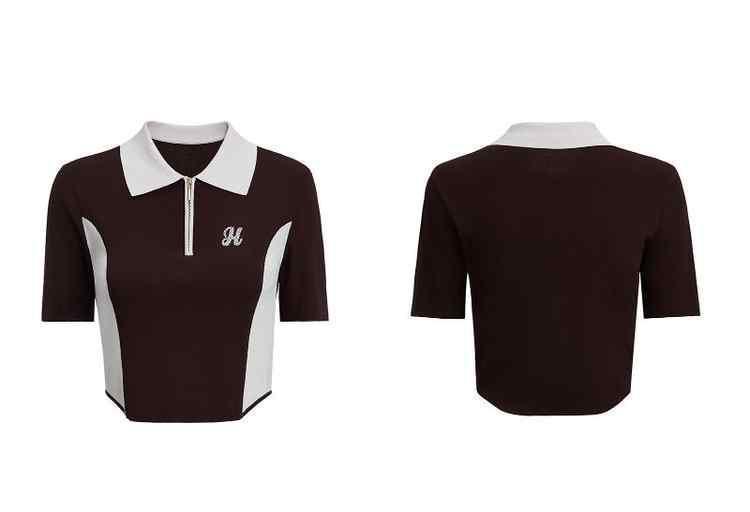 春装 撞色绣珠片休闲Polo领短袖针织衫女 893711