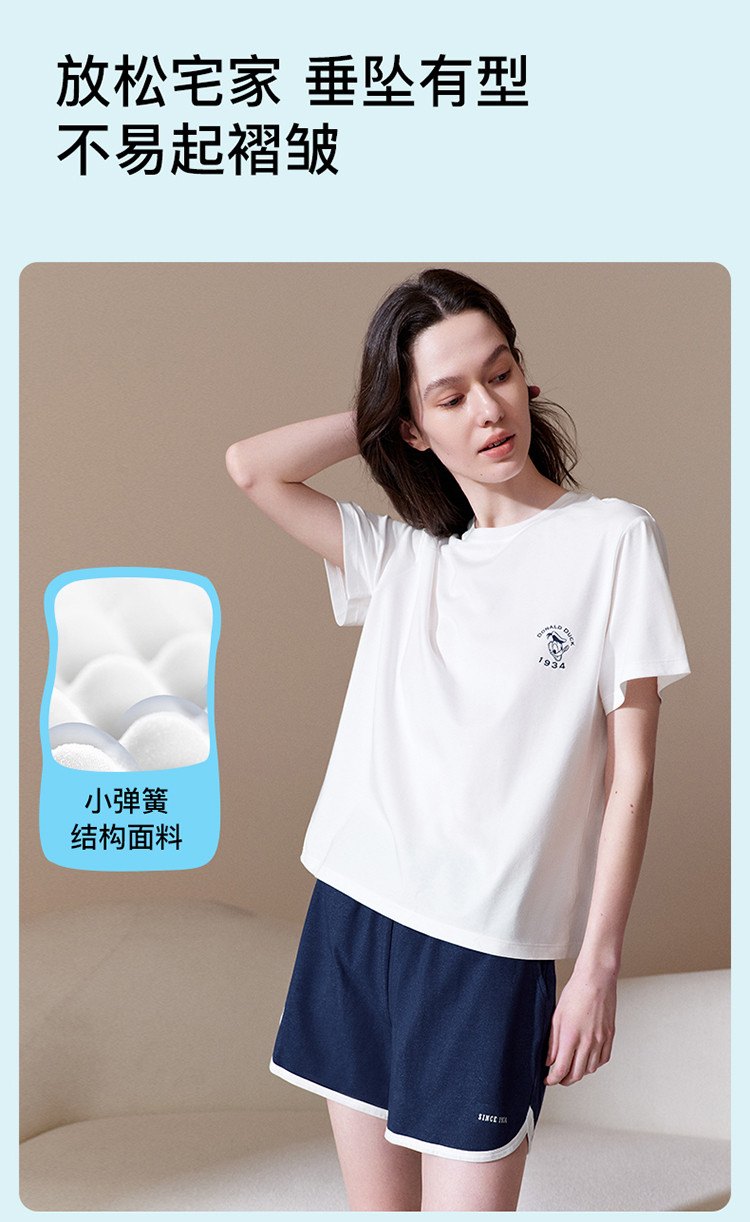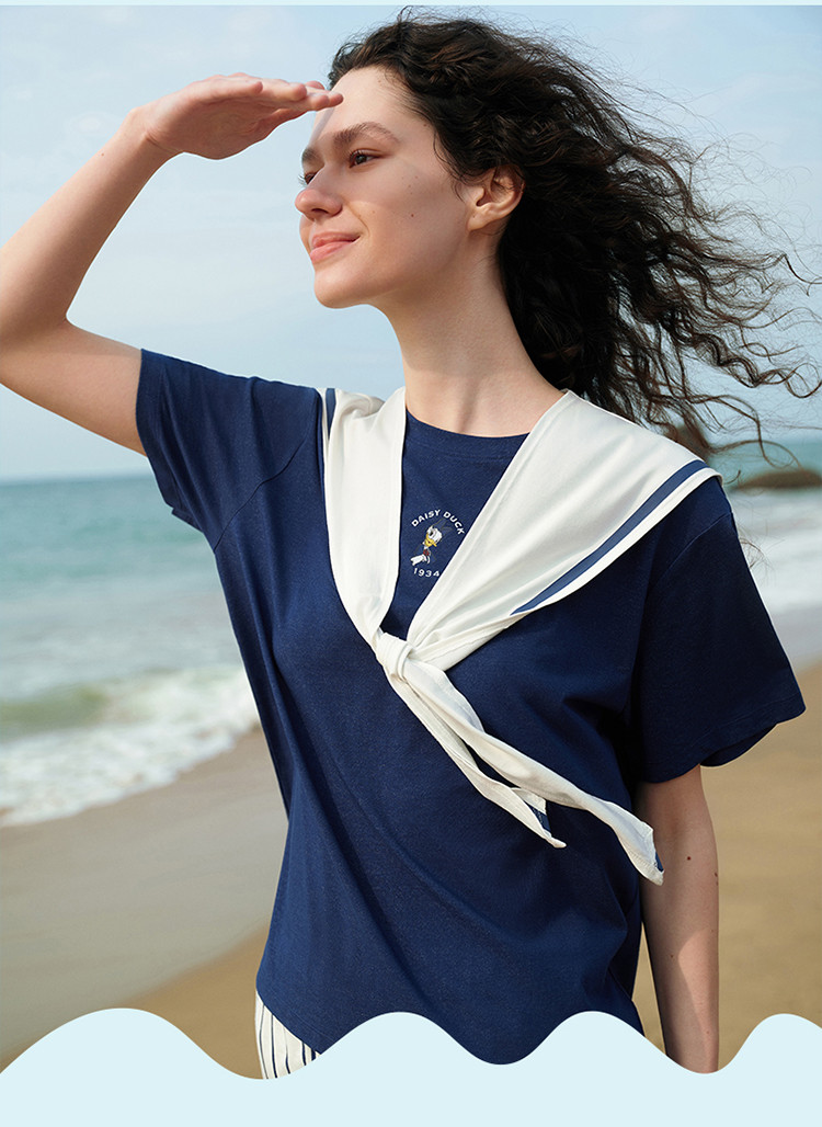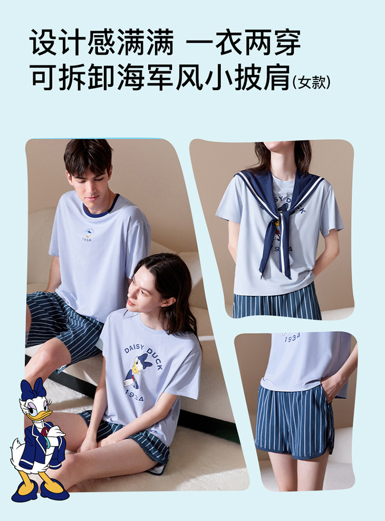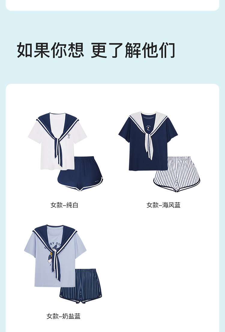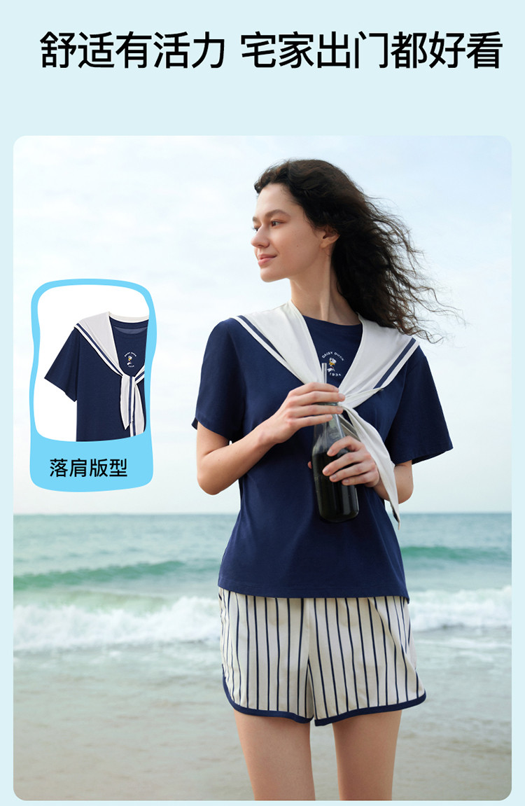 商品名称:【联名款】落肩短袖套装柔软舒适海军风情侣款宽松女士家居服 265216