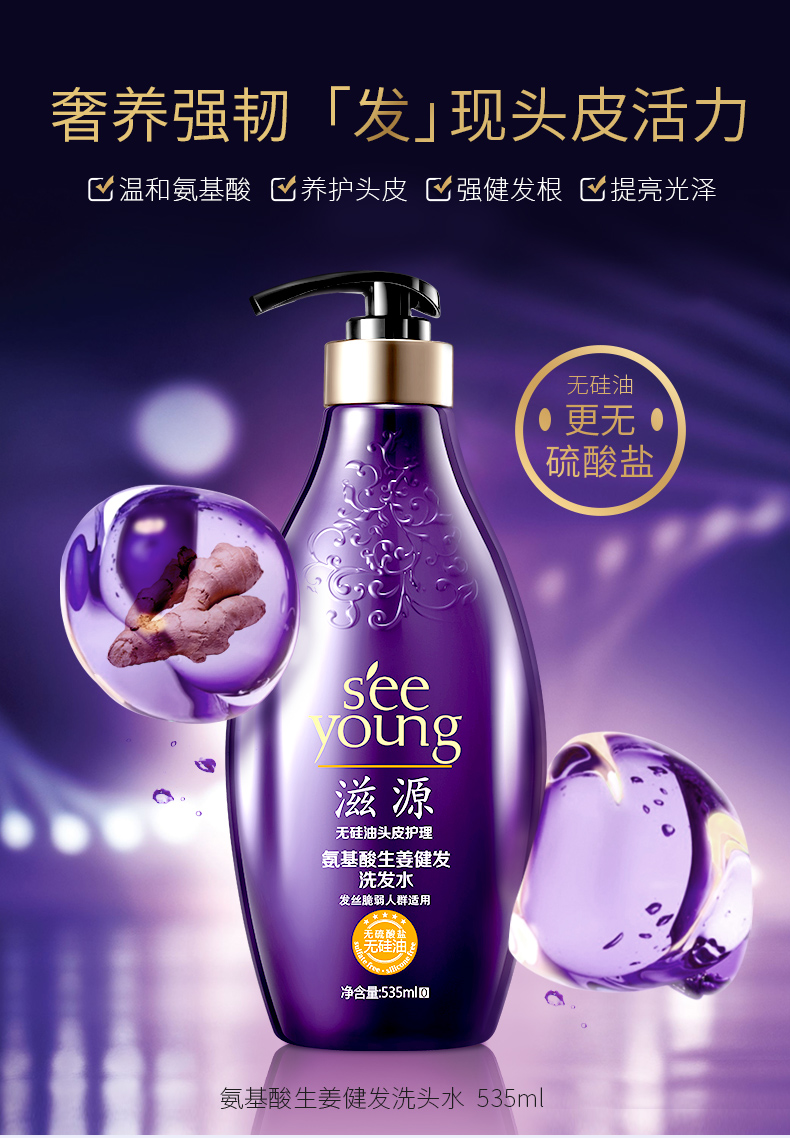 商品名称:滋源 氨基酸生姜健发洗头水 535ml 无硅油 发丝脆弱人群