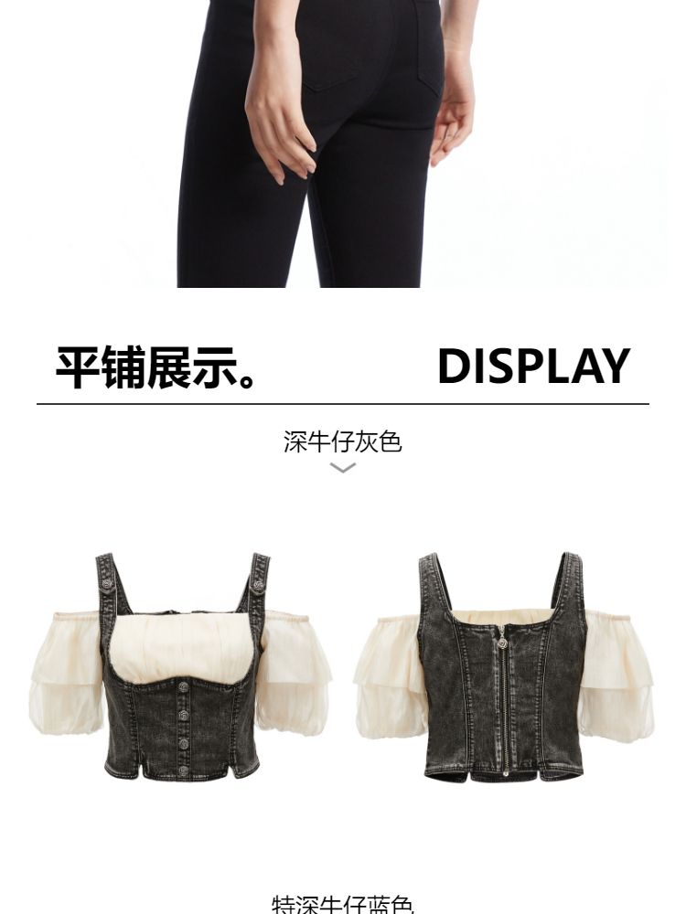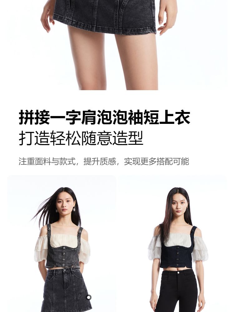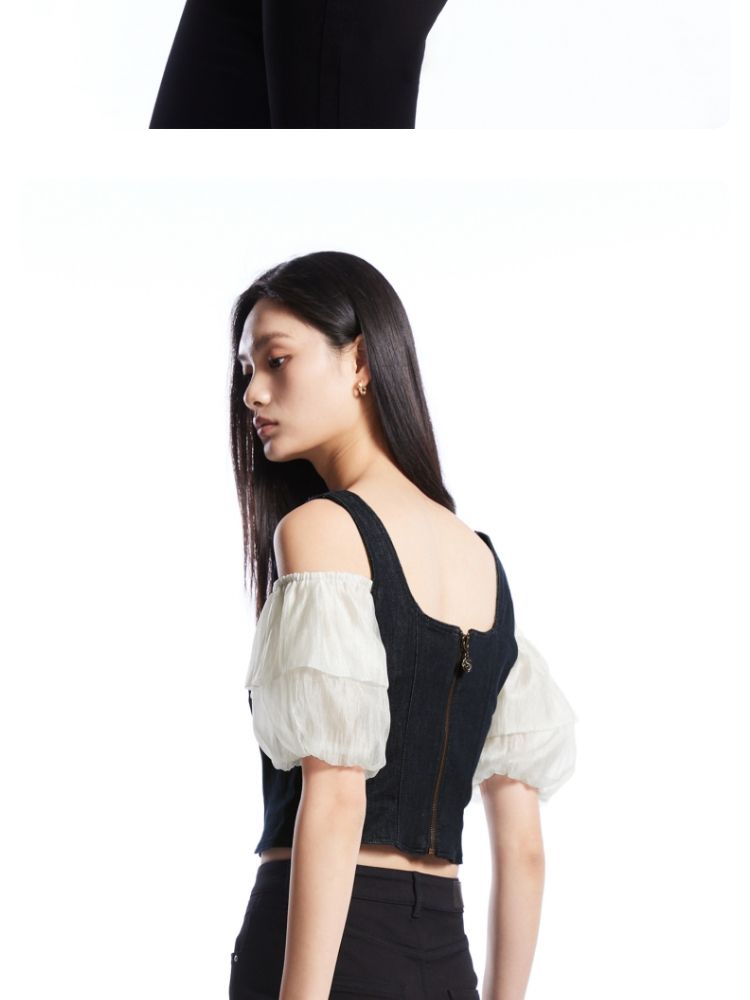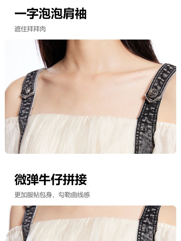 商品名称:【一字肩泡泡袖】衬衫女2024夏款拼接短上衣 639761