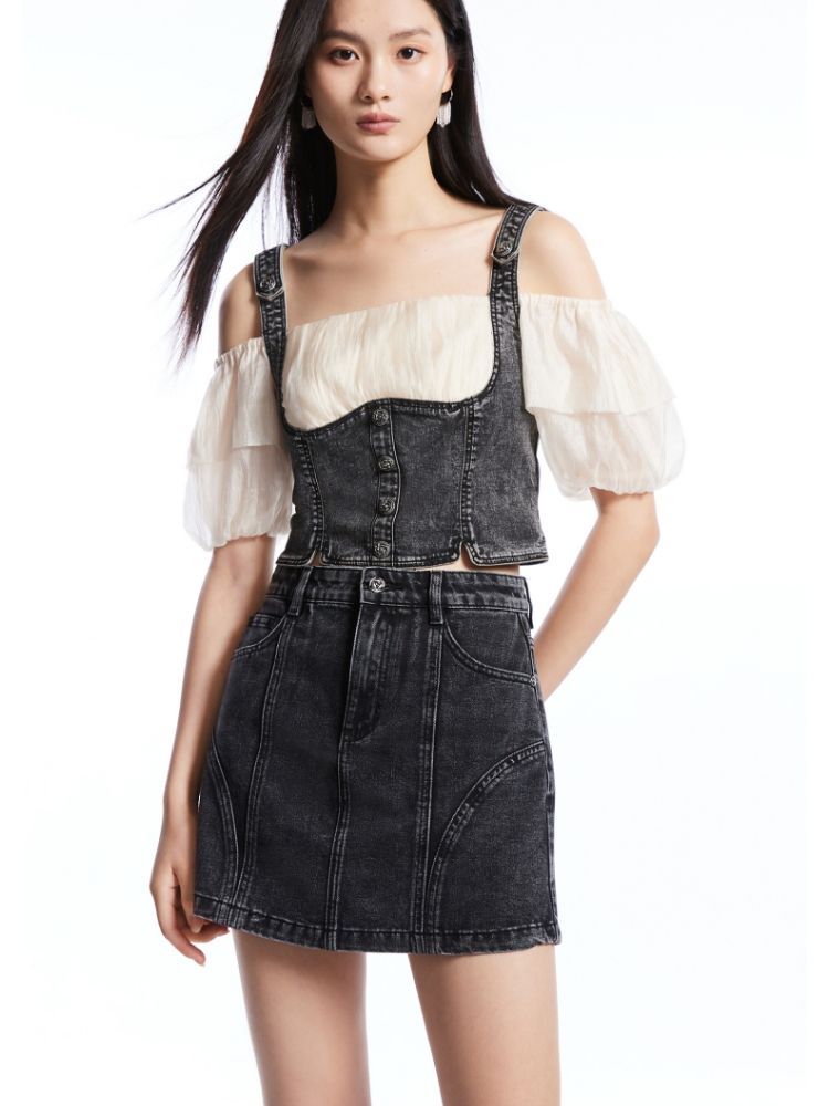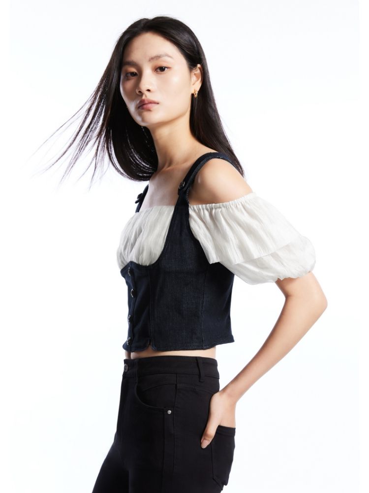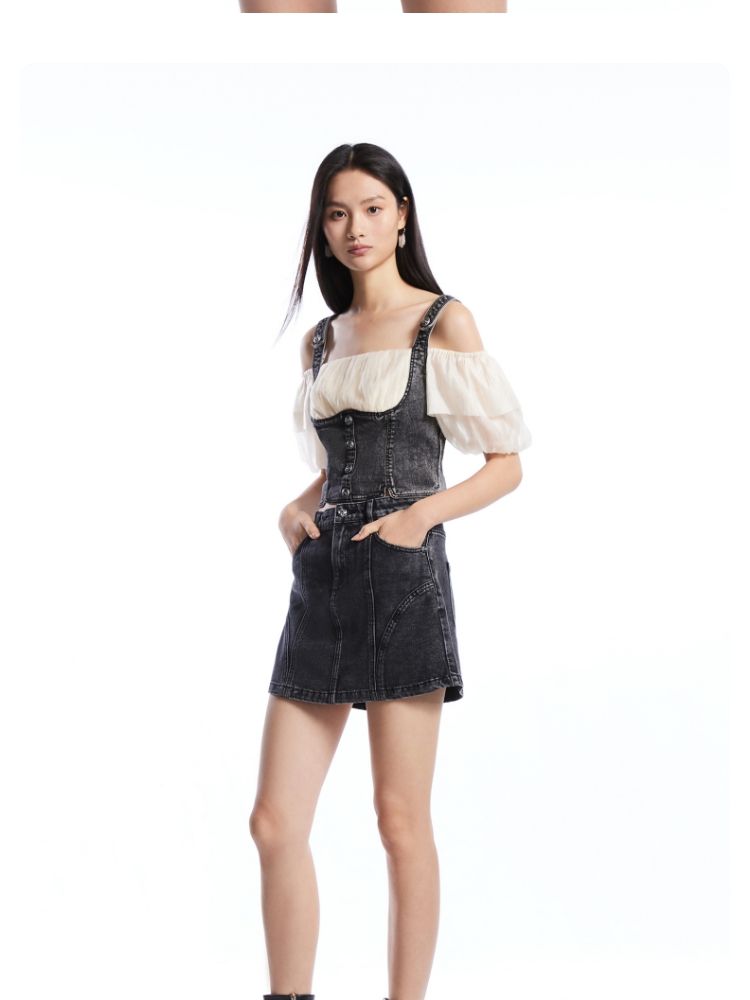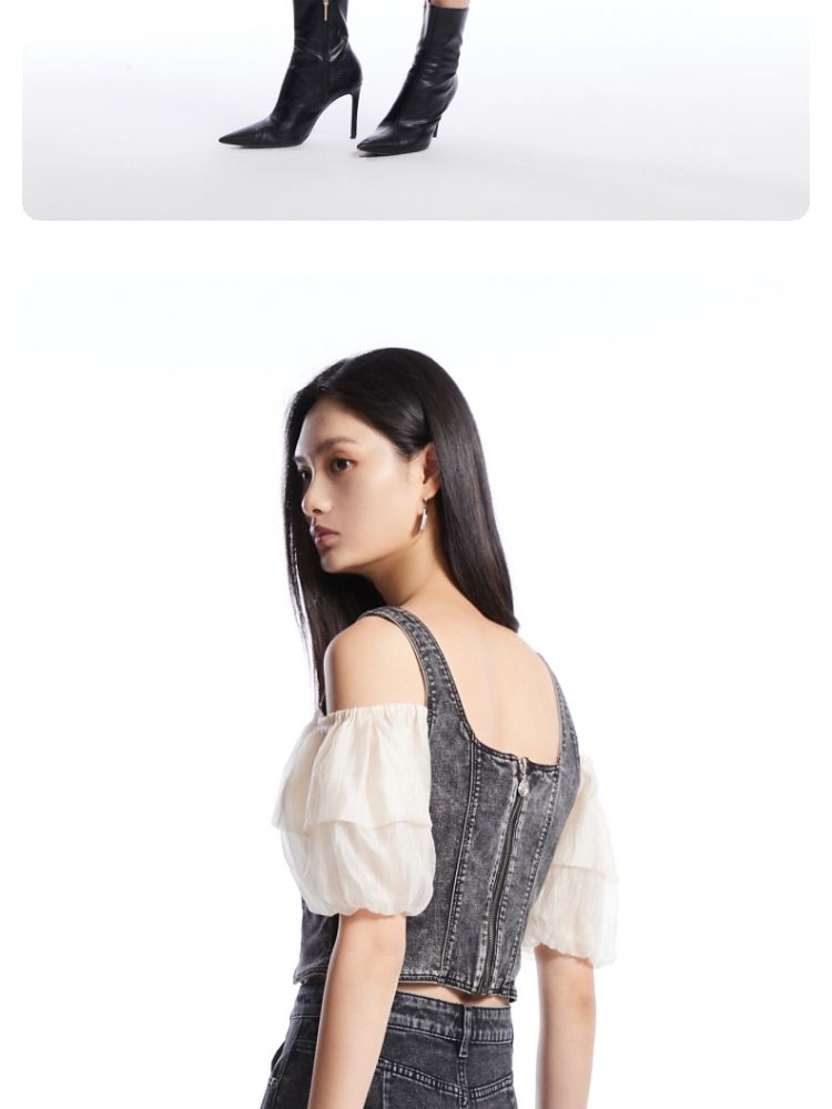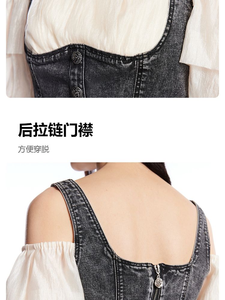 商品名称:【一字肩泡泡袖】衬衫女2024夏款拼接短上衣 639761