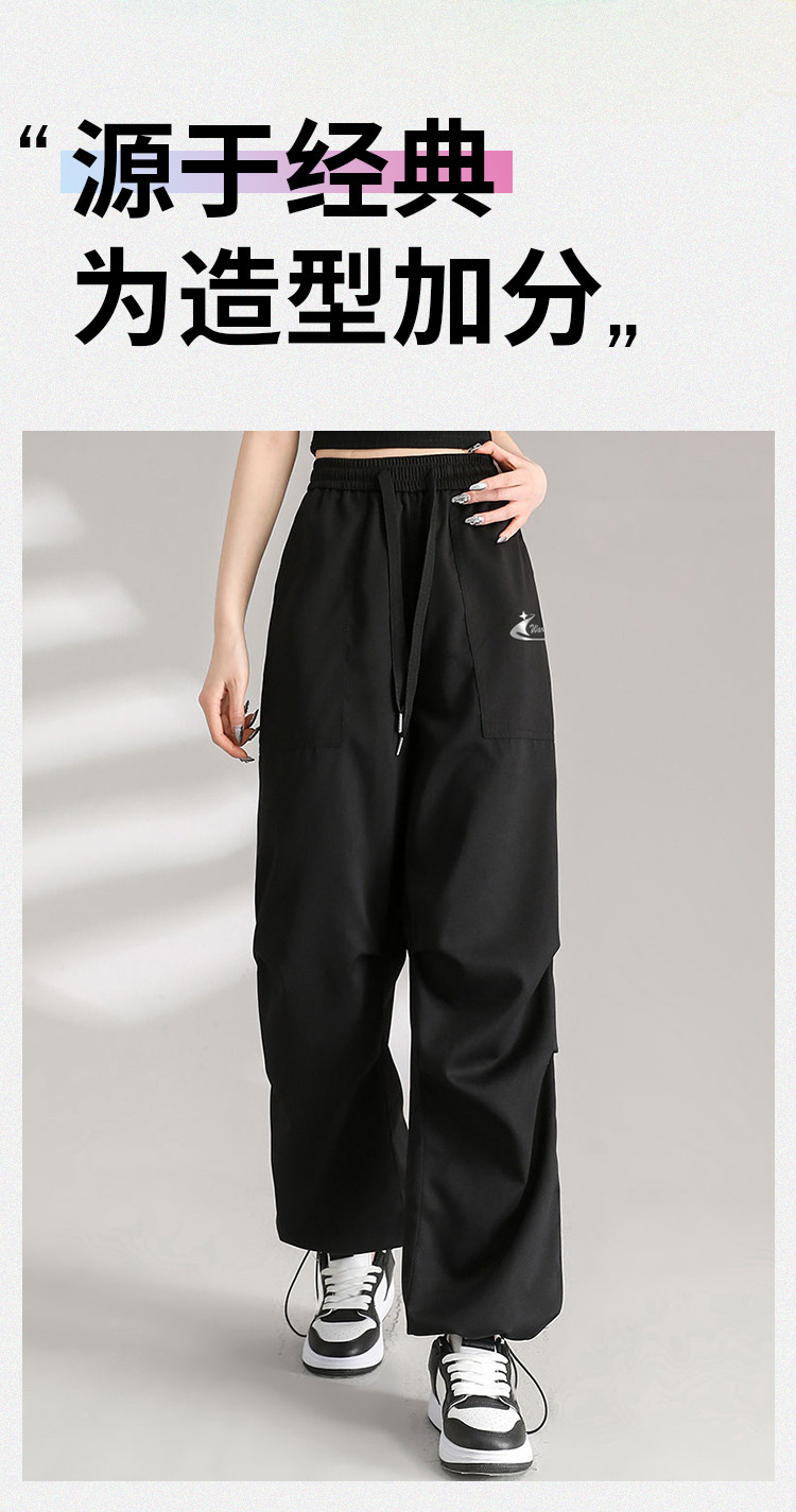 【直筒束脚两穿】女式工装裤宽松显瘦显高运动裤女长裤美式休闲裤 096147